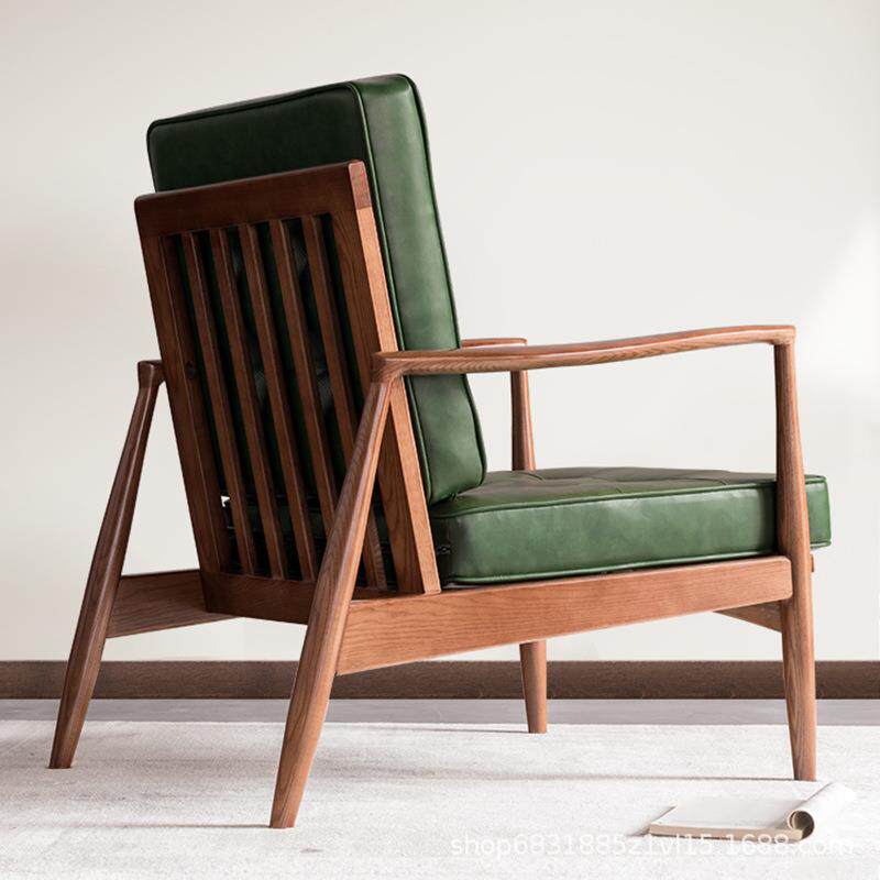 北欧实木沙发椅户外阳台藤编单人休闲椅咖啡椅设计师懒人靠背椅子