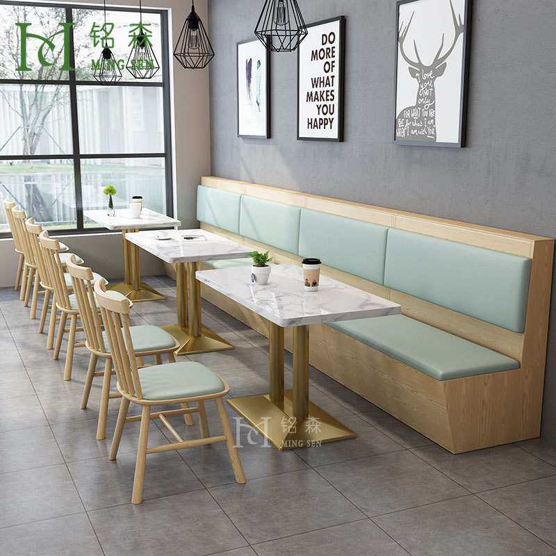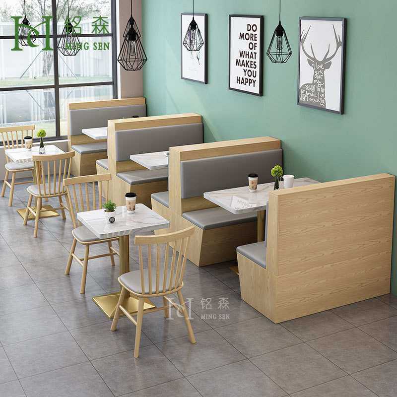 火锅店饭店主题餐厅西餐厅靠墙卡座奶茶店咖啡厅沙发实木桌椅组合