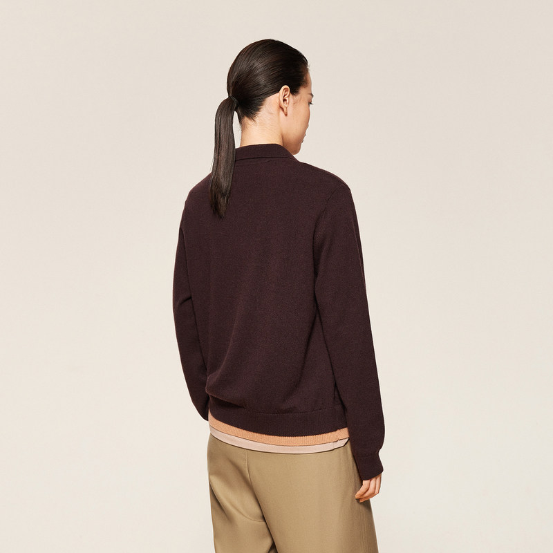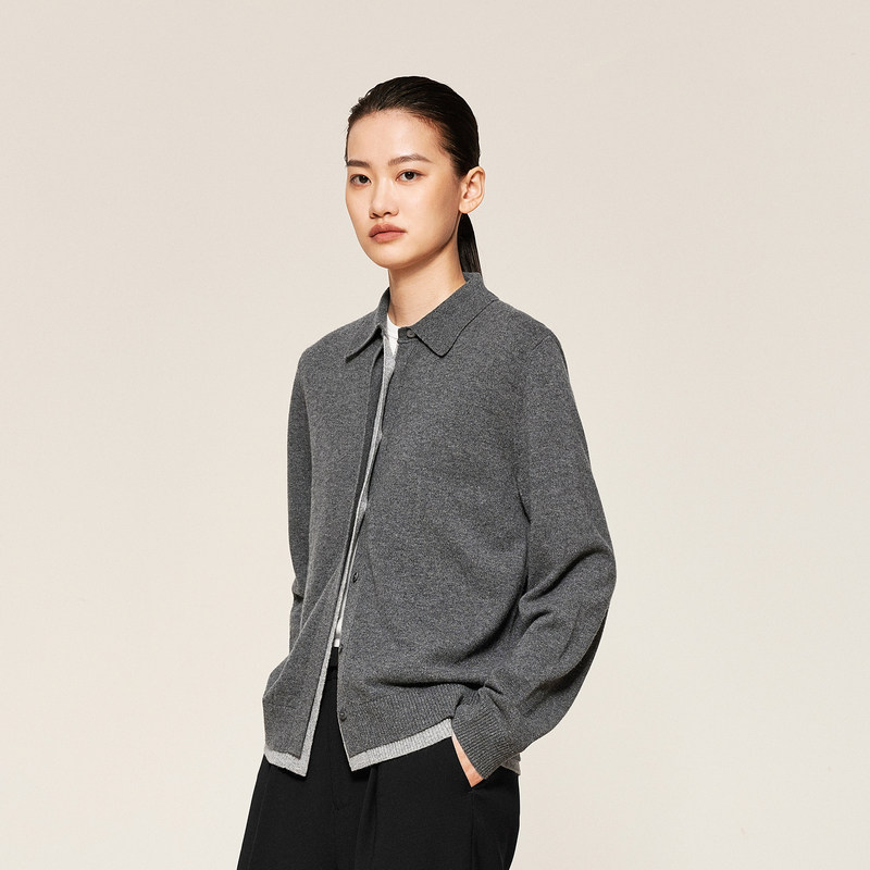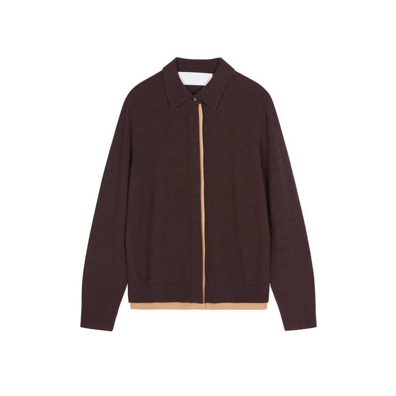 LESS秋含绵羊毛翻领拼色针织衫长袖短款开襟羊绒衫女2O9314800