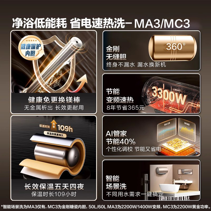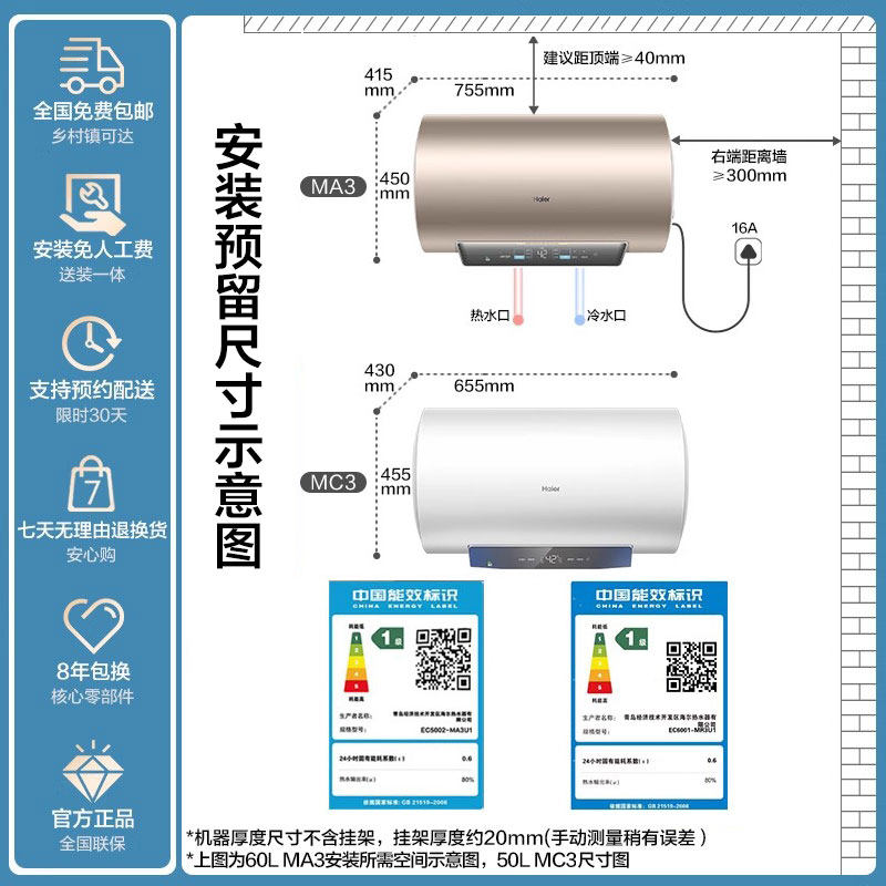 海尔电热水器变频速热一级能效家用官方旗舰换新补贴60升50L80MA3