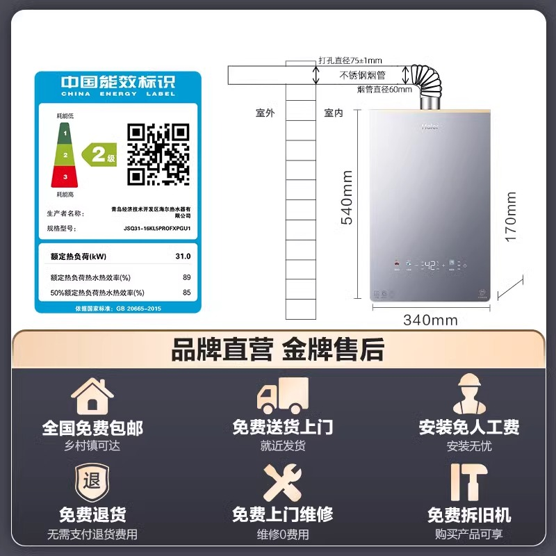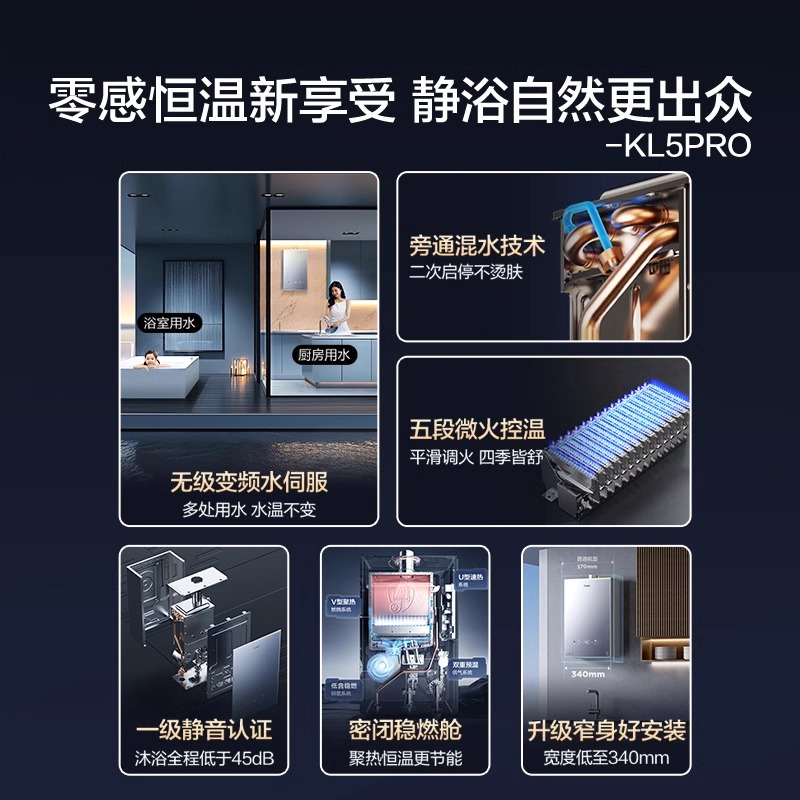海尔燃气款天然气热水器16L水伺服恒温增压官方密闭稳燃舱KL5pro