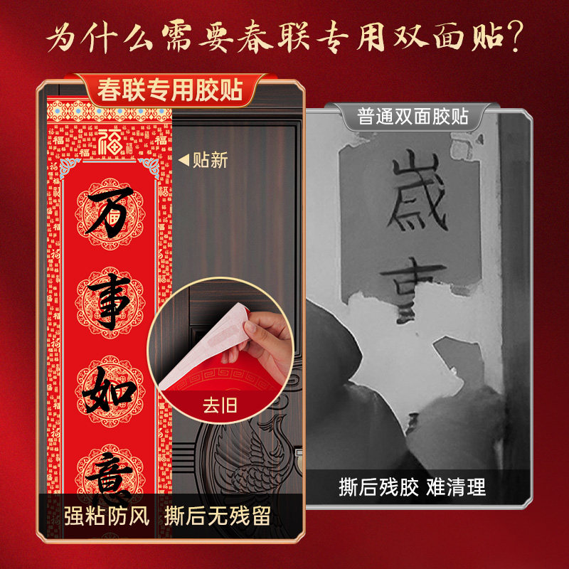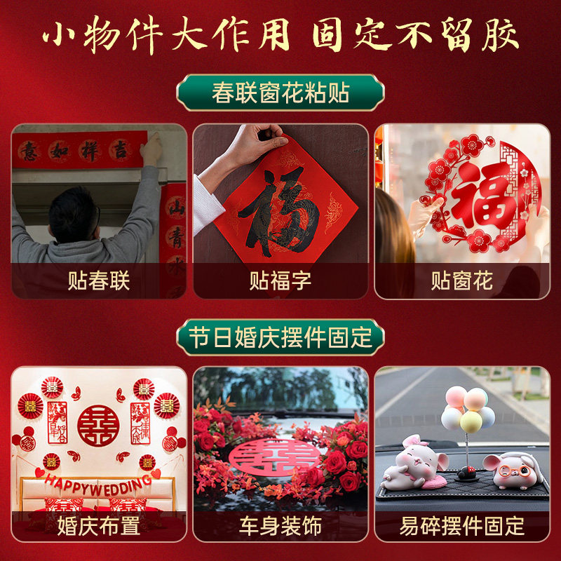 粘对联专用胶带不留痕多功能纳米无痕双面胶透明贴春联神器高粘度强力易撕贴粘婚庆婚车喜字装饰固定神器墙面
