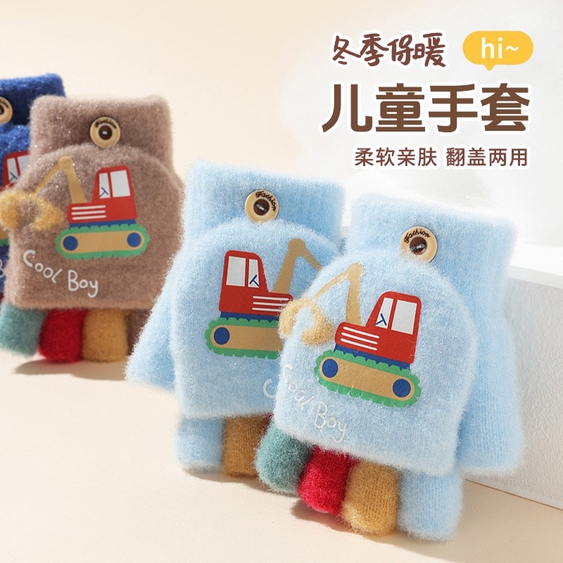 儿童手套男童冬季保暖小孩写字五指翻盖男孩小学生半指写作业大童