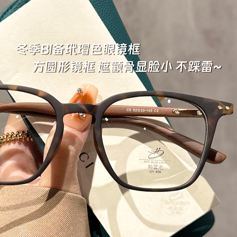 磨砂玳瑁色方框木纹眼镜近视女可配有度数设计师款豹纹眼睛镜架男