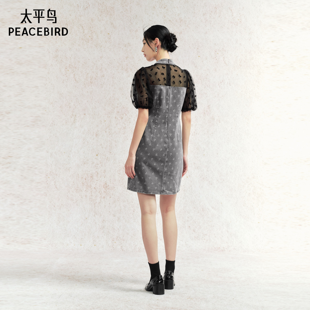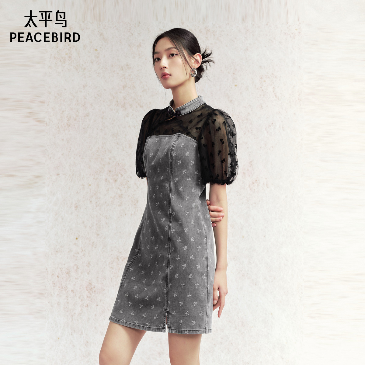 太平鸟女装中式牛仔连衣裙夏国风拼接短裙洋气别致度假裙子