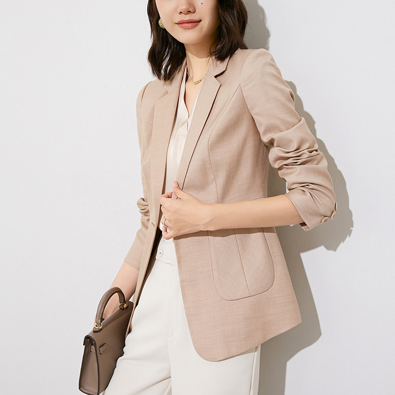 晚白2026年春新款气质西装翻驳领修身纯色淑女长袖西服外套女