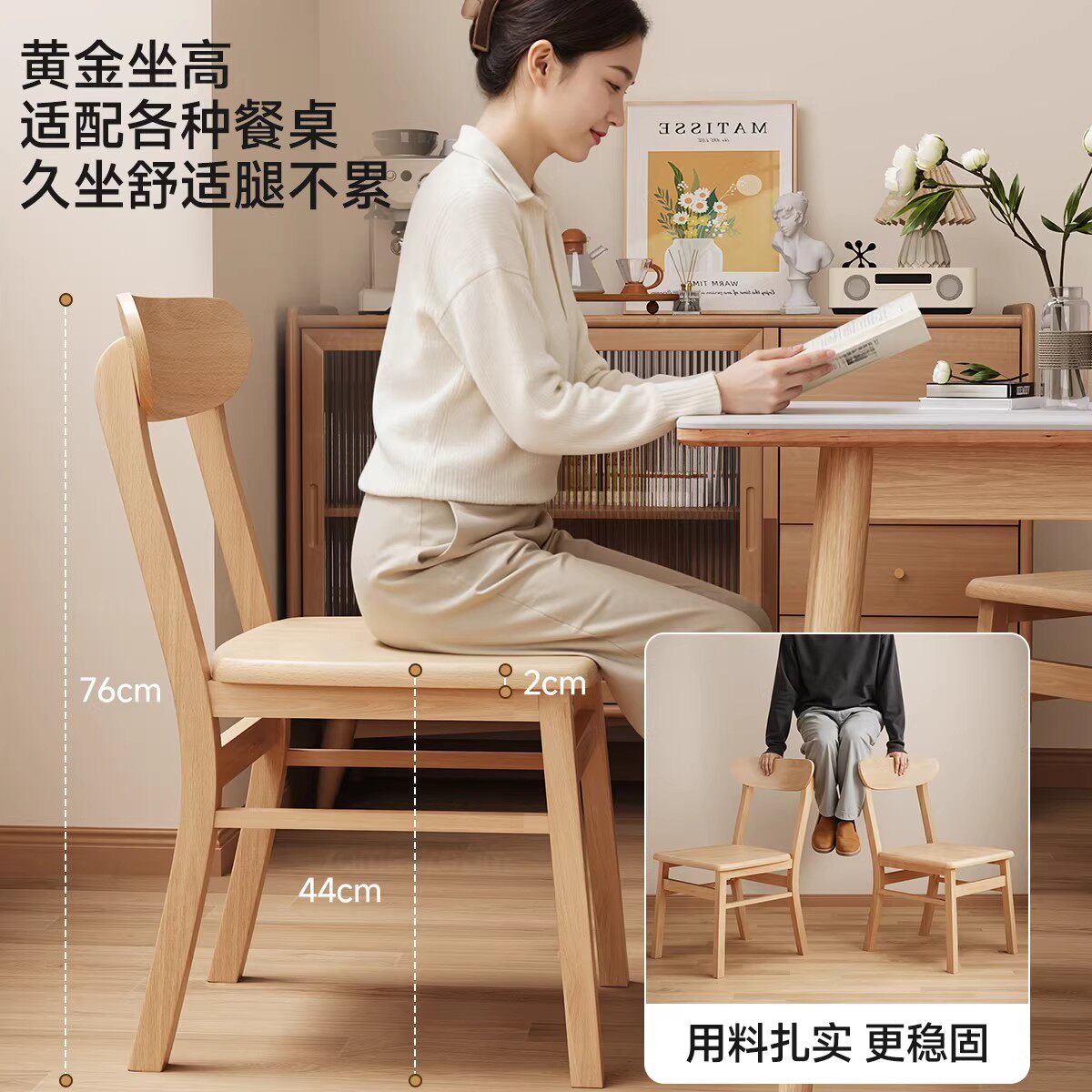 三梦实木餐椅家用餐桌靠背椅子餐厅凳子北欧餐桌椅轻奢奶油扶手