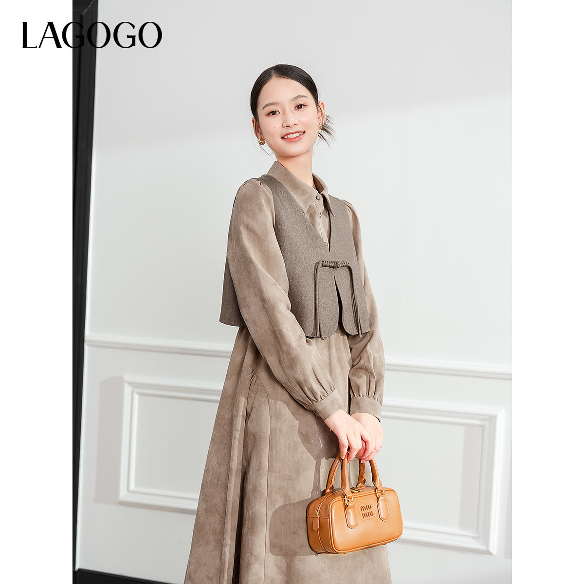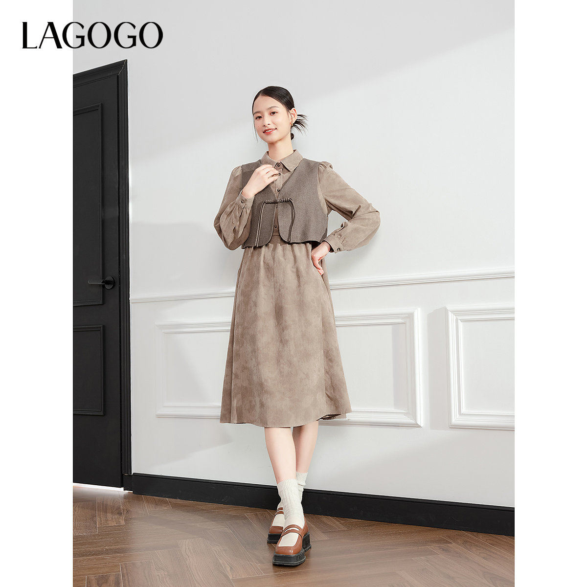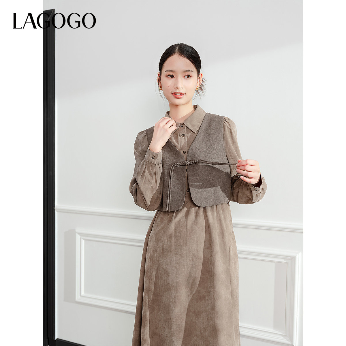 LAGOGO新中式优雅气质国风两件套女拉谷谷冬季新款连衣裙