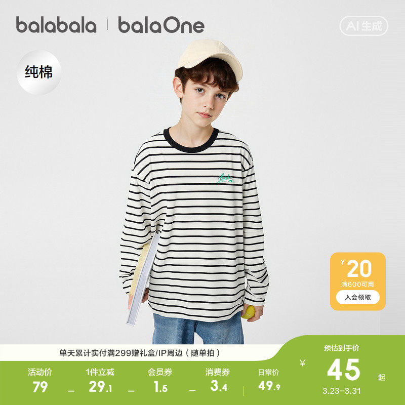 【balaOne】巴拉巴拉童装儿童长袖t恤男女童2026春季新款纯棉速干