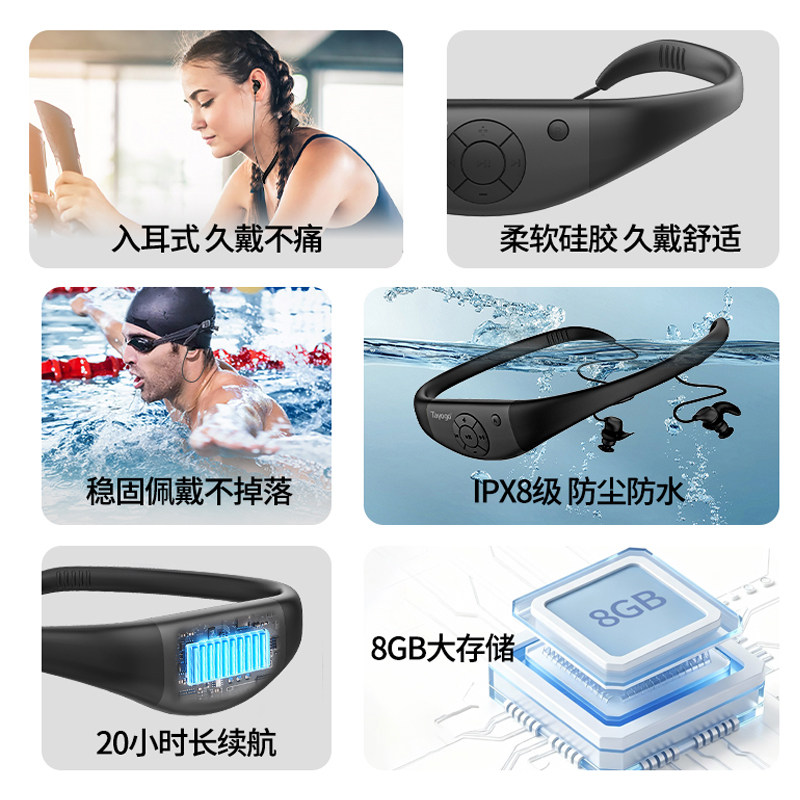 Tayogo专业游泳耳机入耳式防水下专用MP3带8G内存比骨传导更好