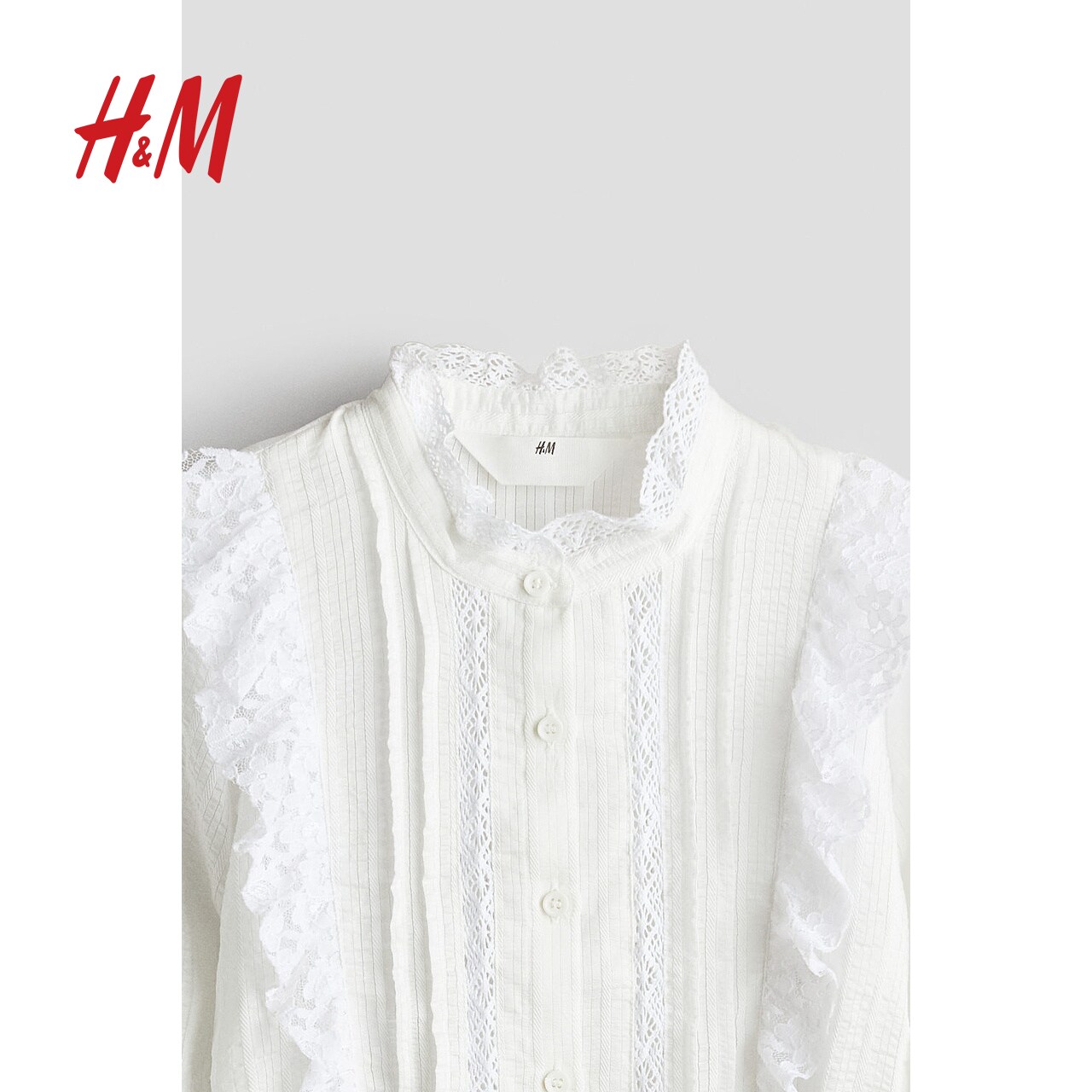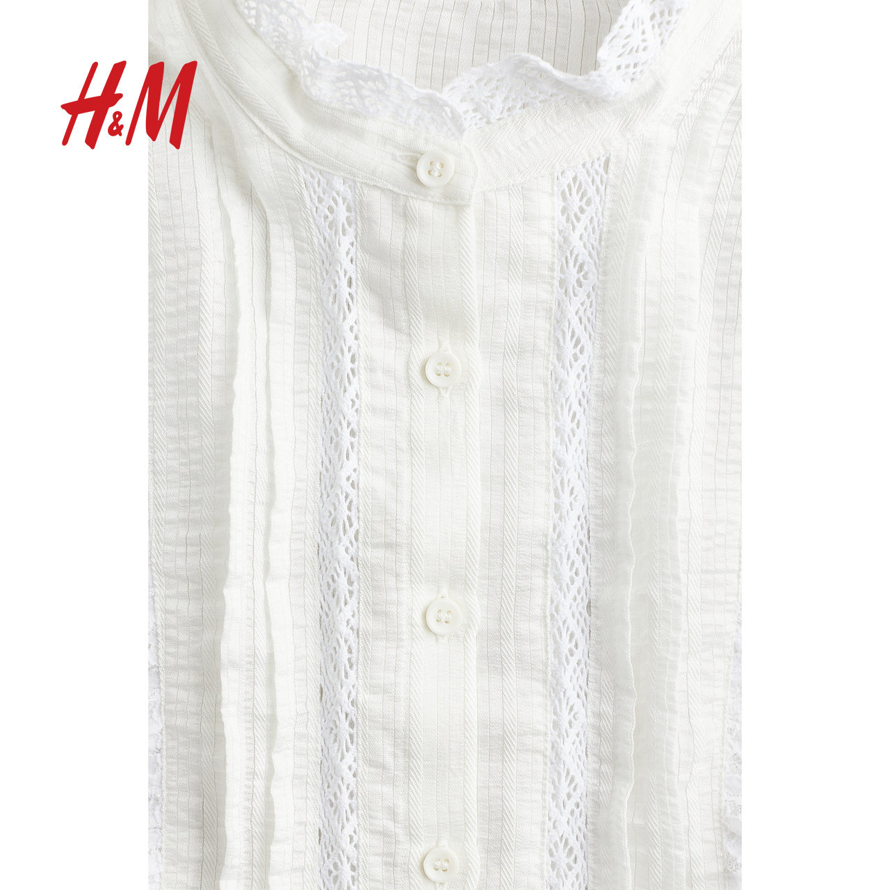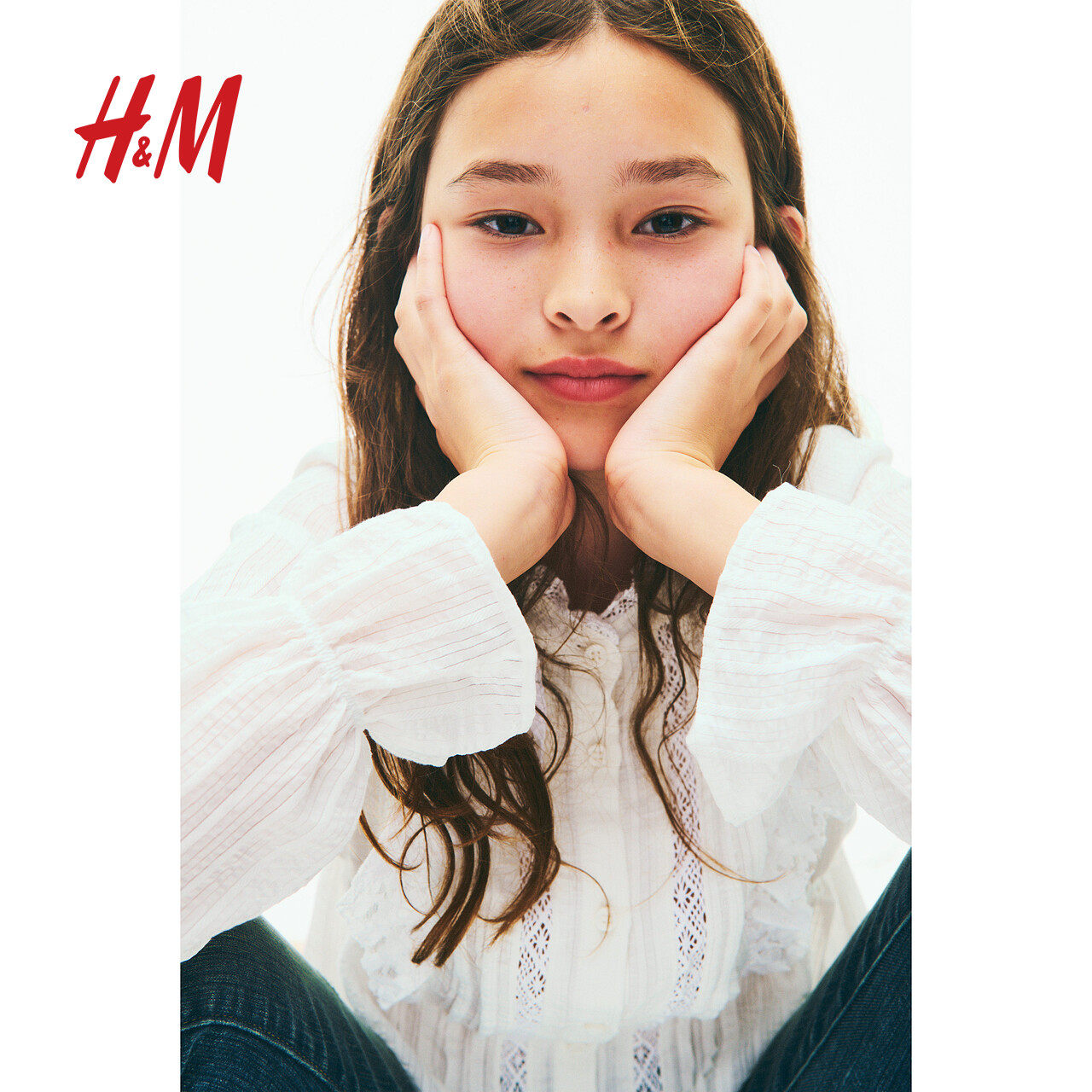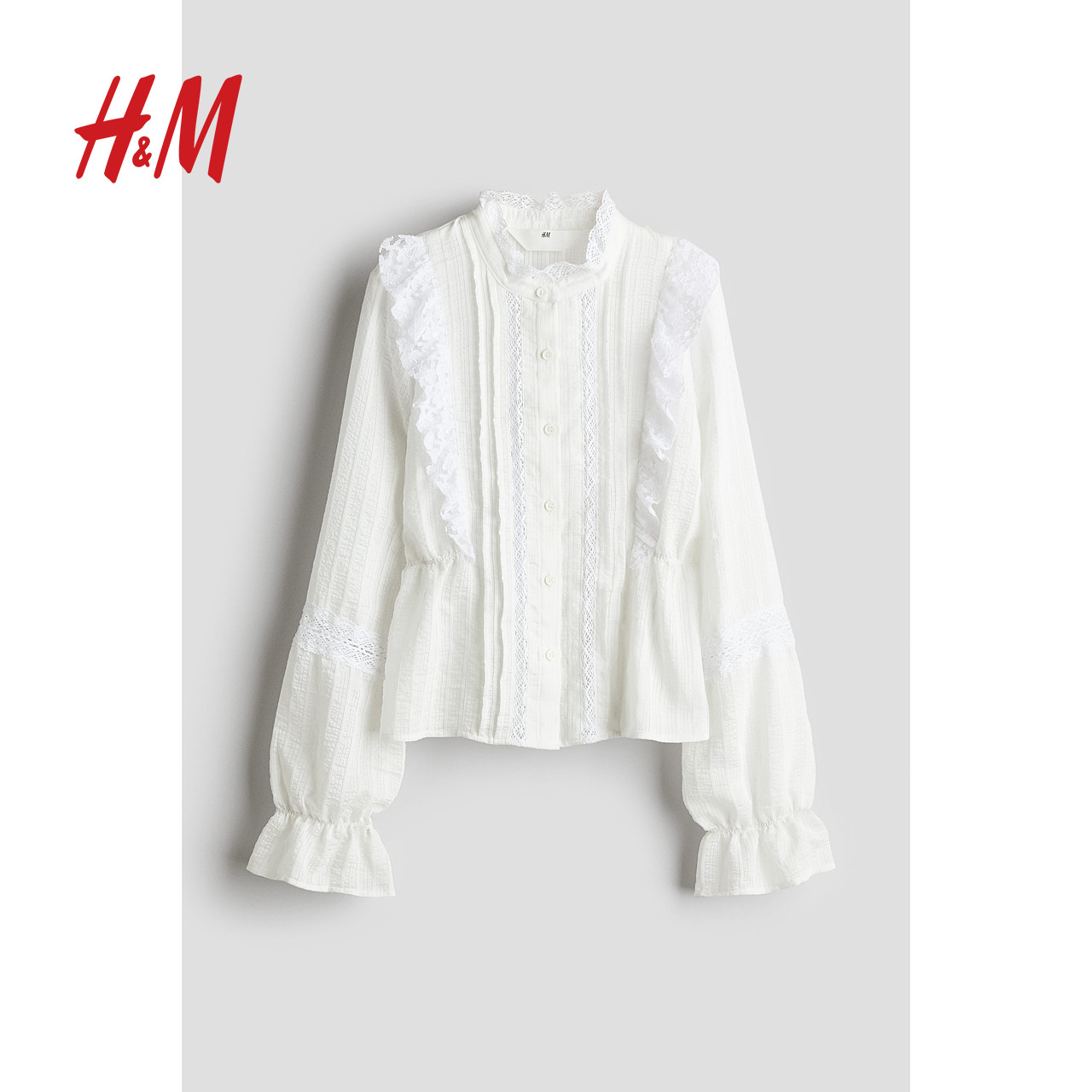 HM童装儿童女童衬衫春季礼服演出服褶边蕾丝嵌花衬衣上衣1256427