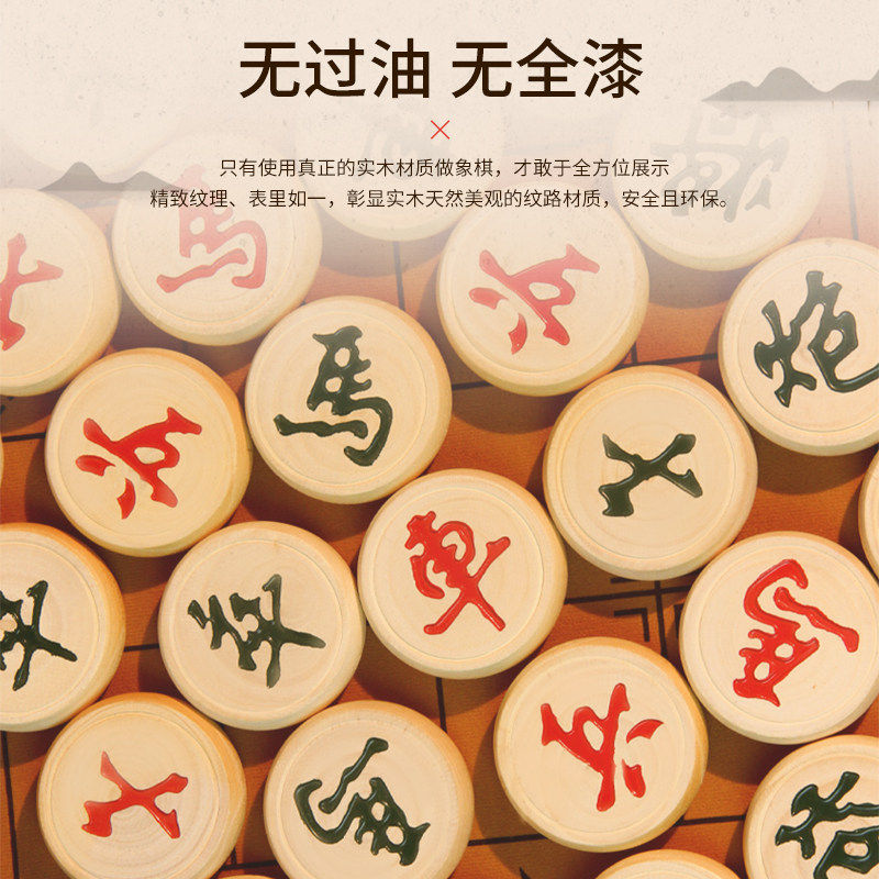 中国象棋木质家用学生成人儿童实木棋子套装大号高档便携皮革棋盘