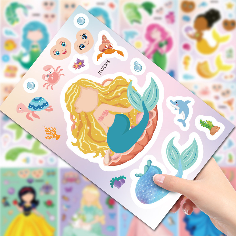 小公主可爱卡通动漫DIY创意趣味贴纸儿童喜爱快乐互动组合变脸装扮卡通自粘贴热门手账贴人物五官
