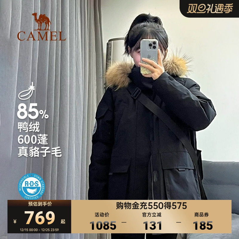 【貉子毛领】骆驼极寒派克中长款羽绒服女工装羽绒衣冬季新款外套