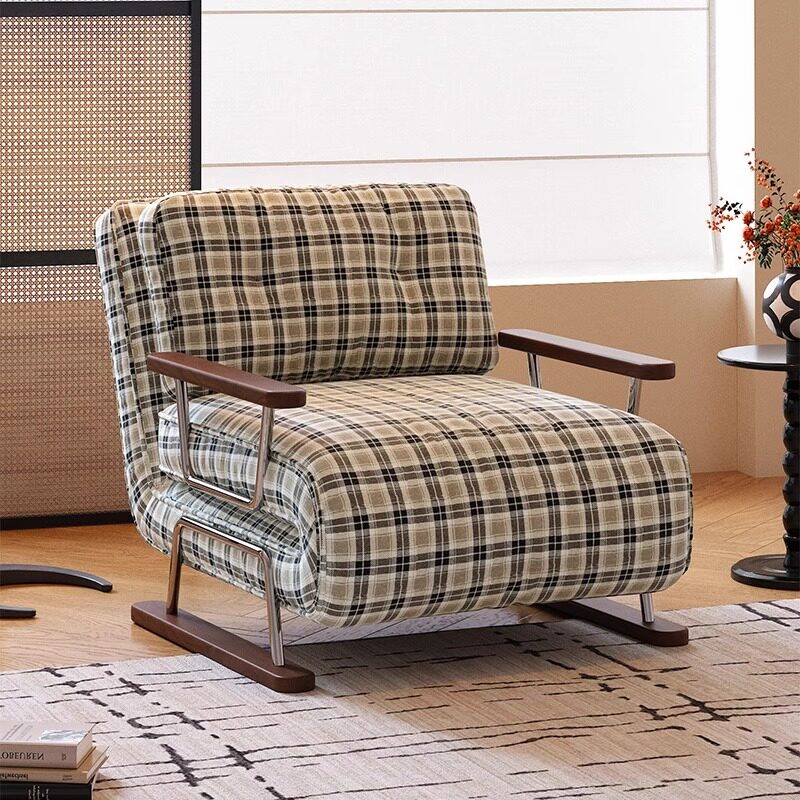 司朴中古风千鸟格芬迪沙发床客厅小户型可折叠一体两用休闲沙发椅