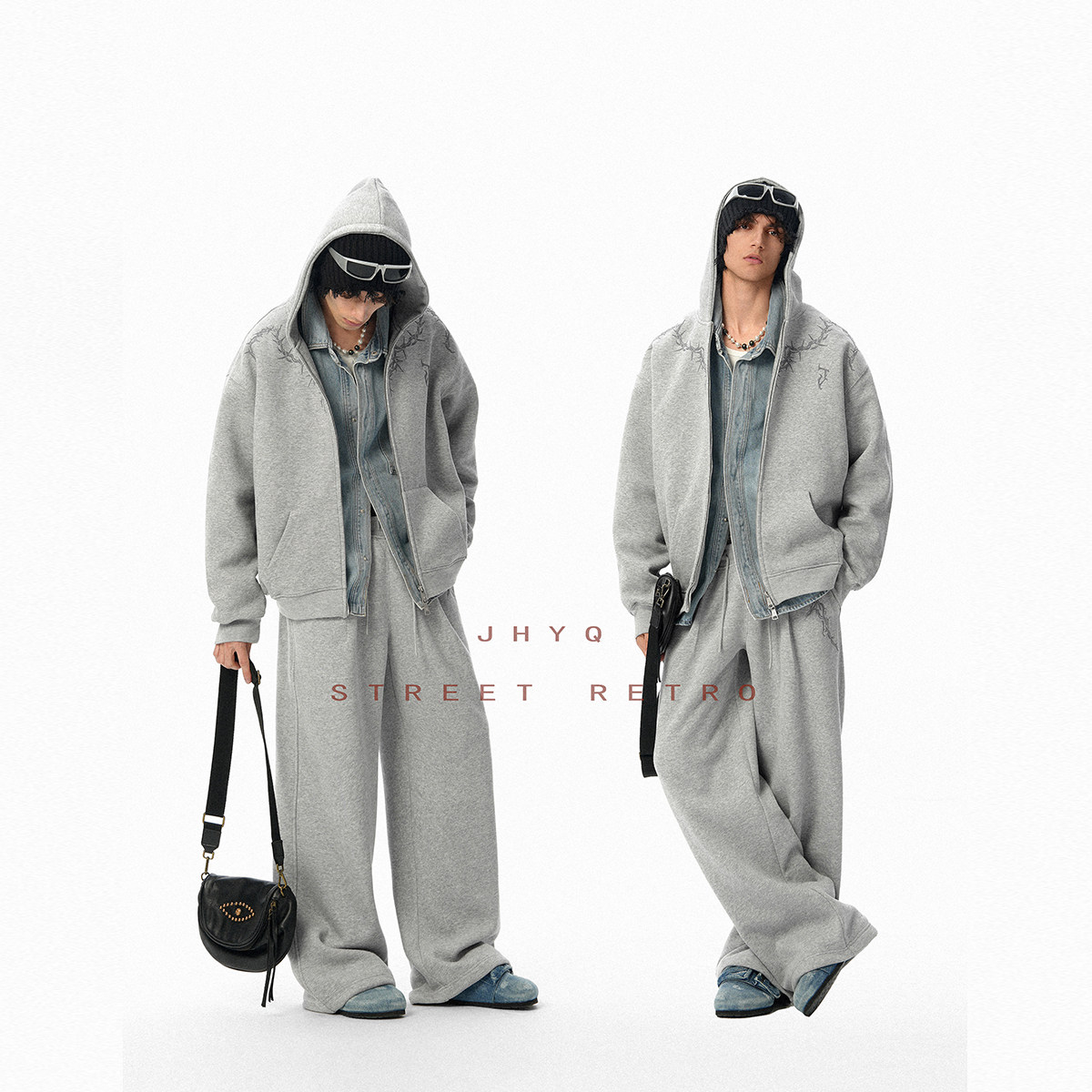 荆棘系列丨JHYQ净化眼球美式哥特400G连帽开衫卫衣男情侣宽松外套