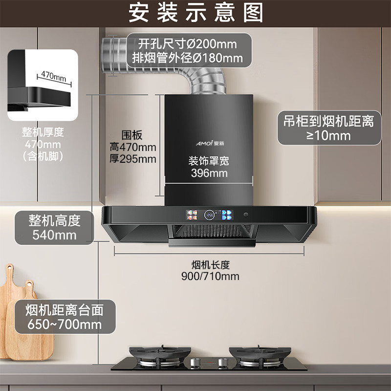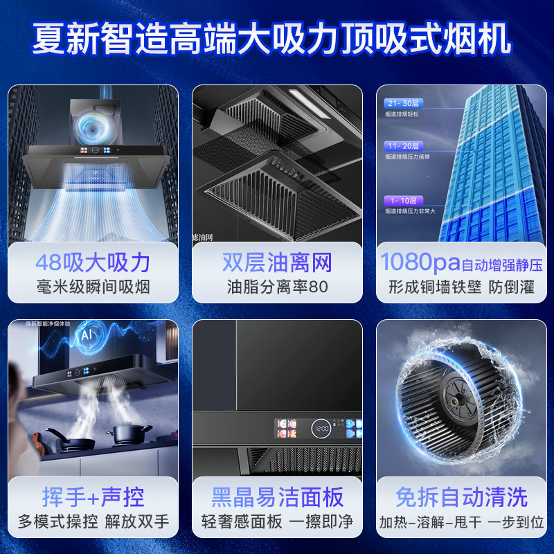 夏新顶吸油烟机家用八键大吸力AI声控一级能效自动免清洗厨房净烟