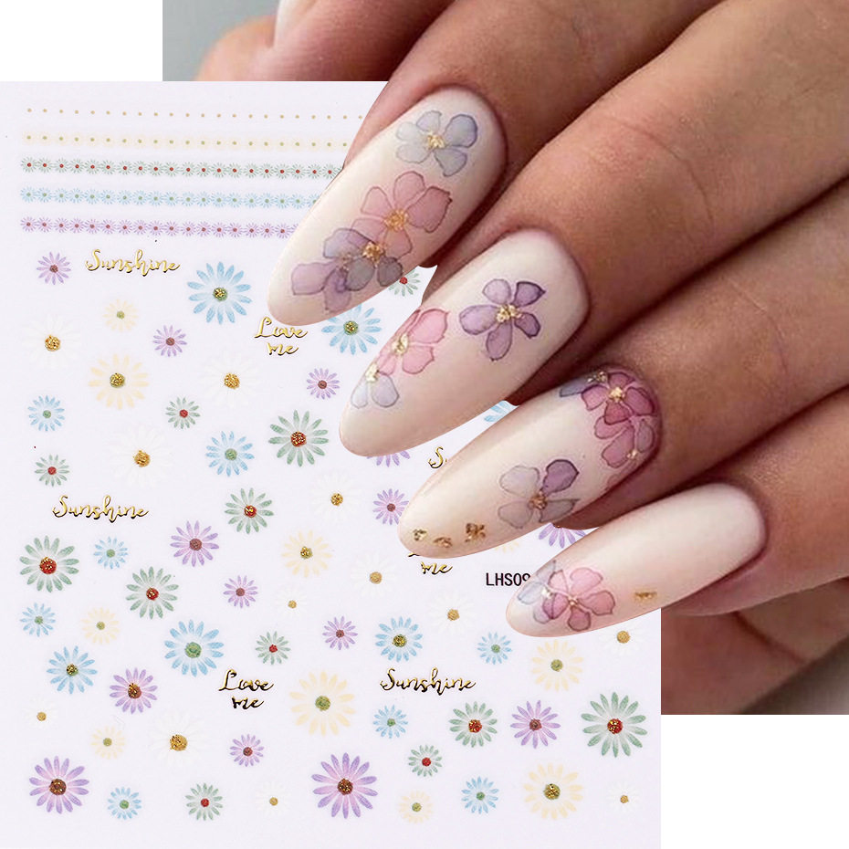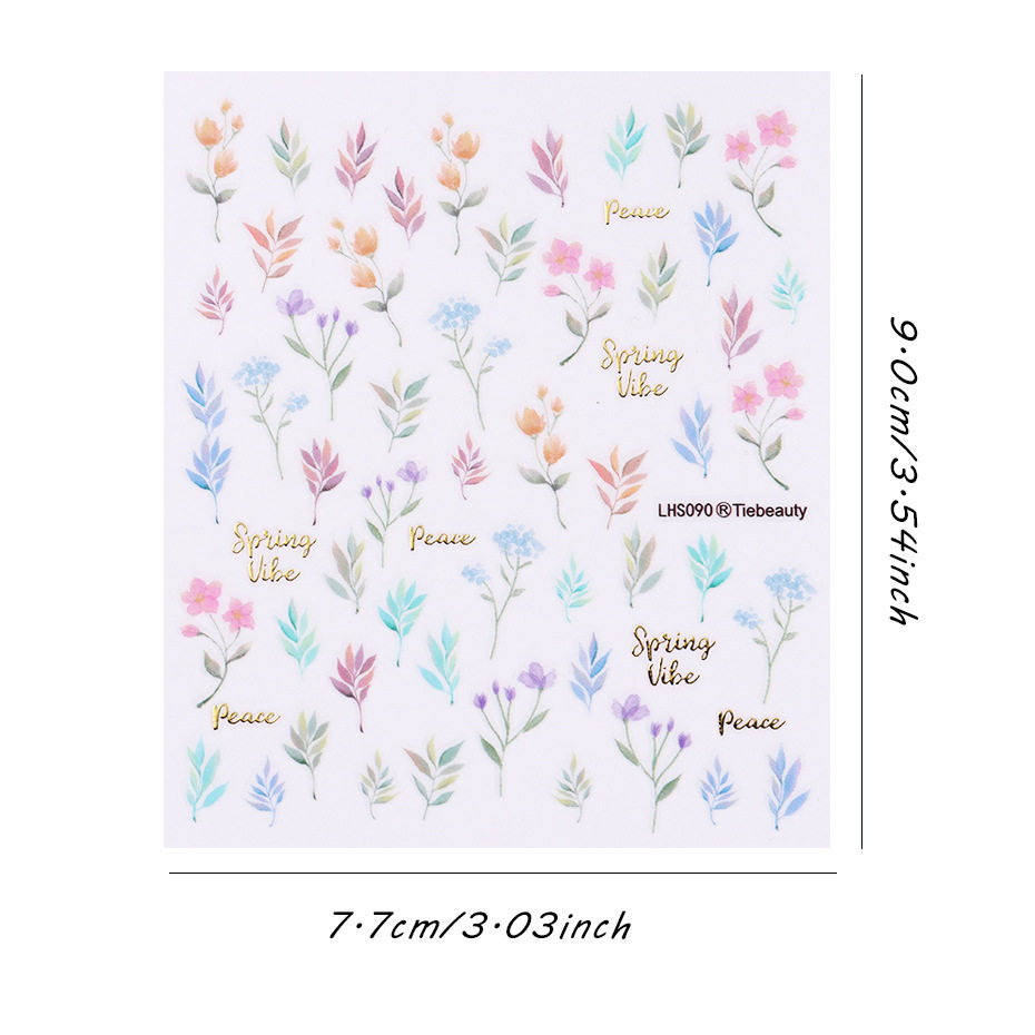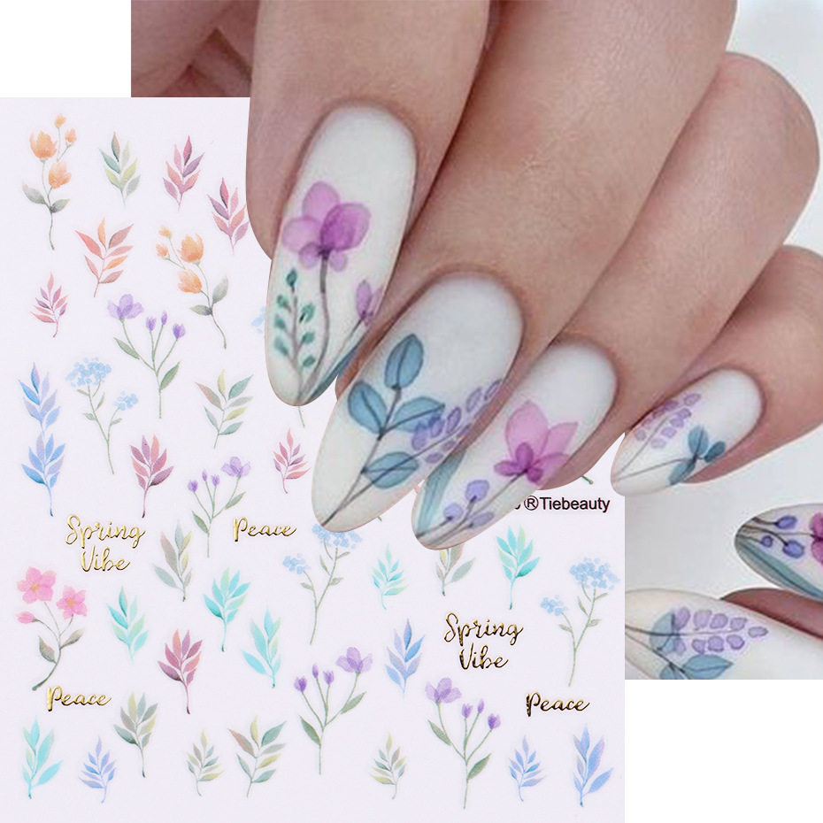 Watercolor Flower Nail Stickers Small Fresh Spring And Summe