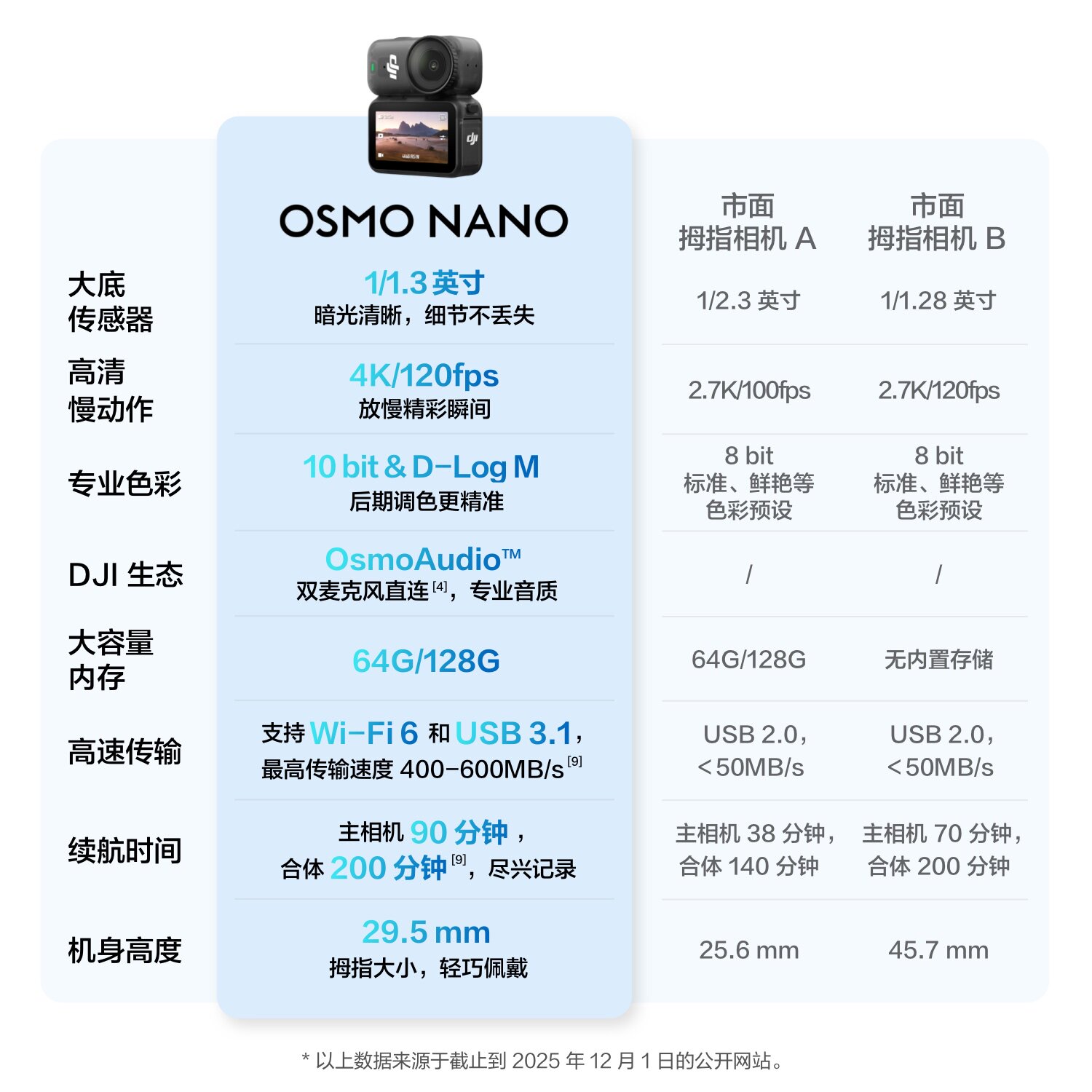 【京东/顺丰】DJI大疆 Osmo Nano穿戴相机Vlog亲子运动4K拇指相机