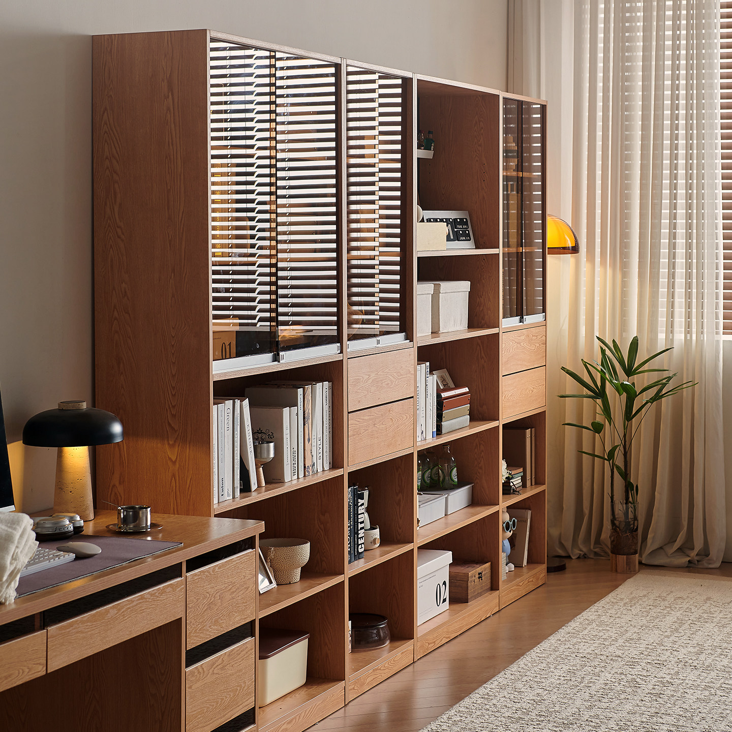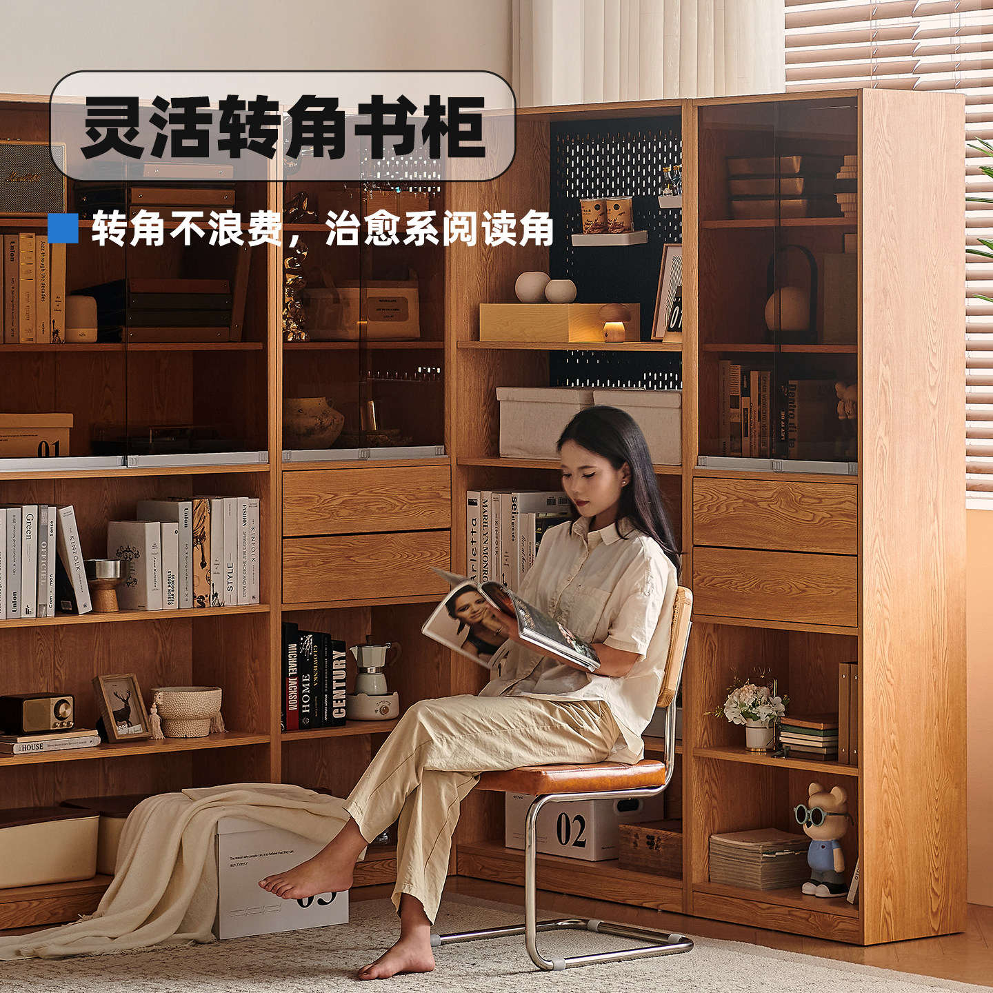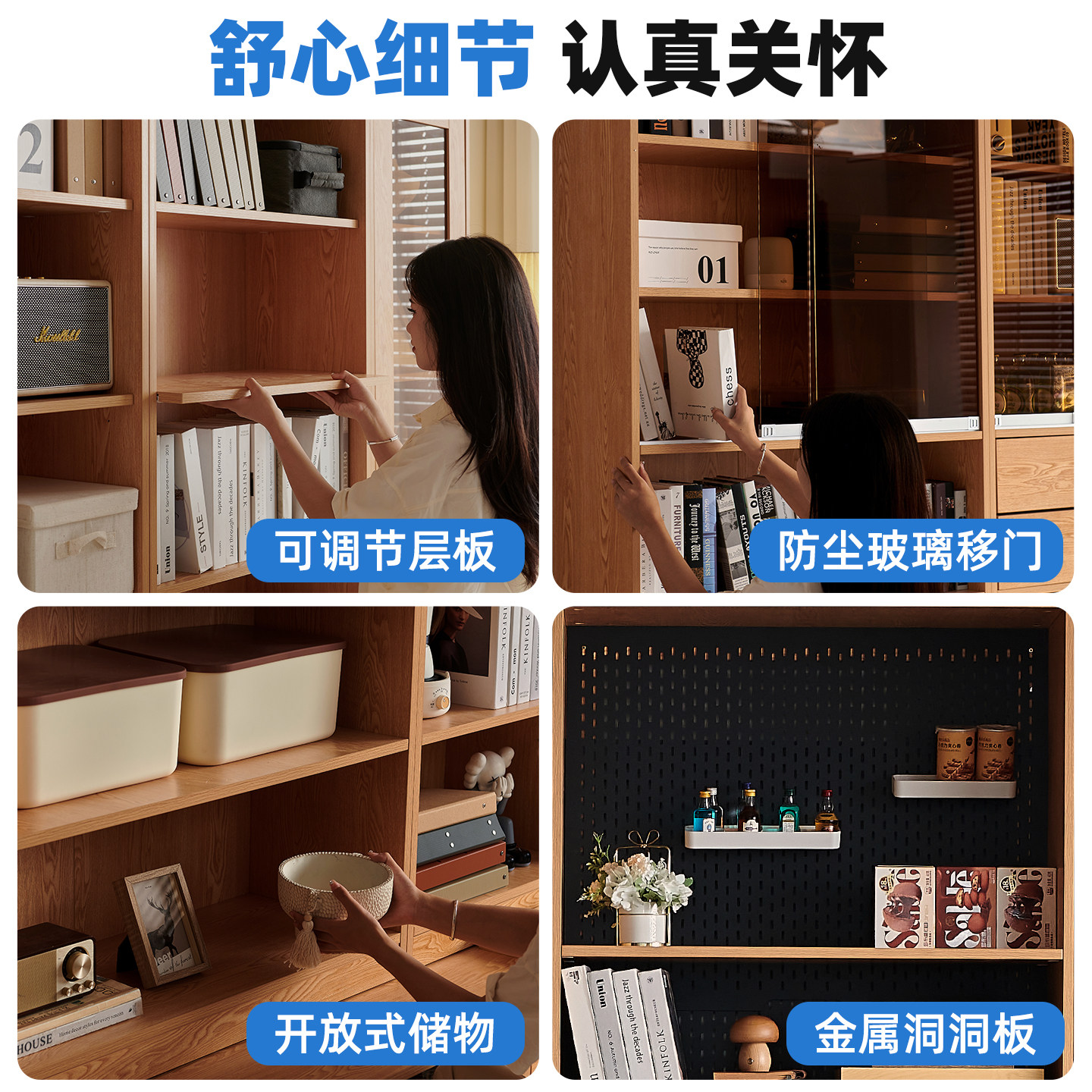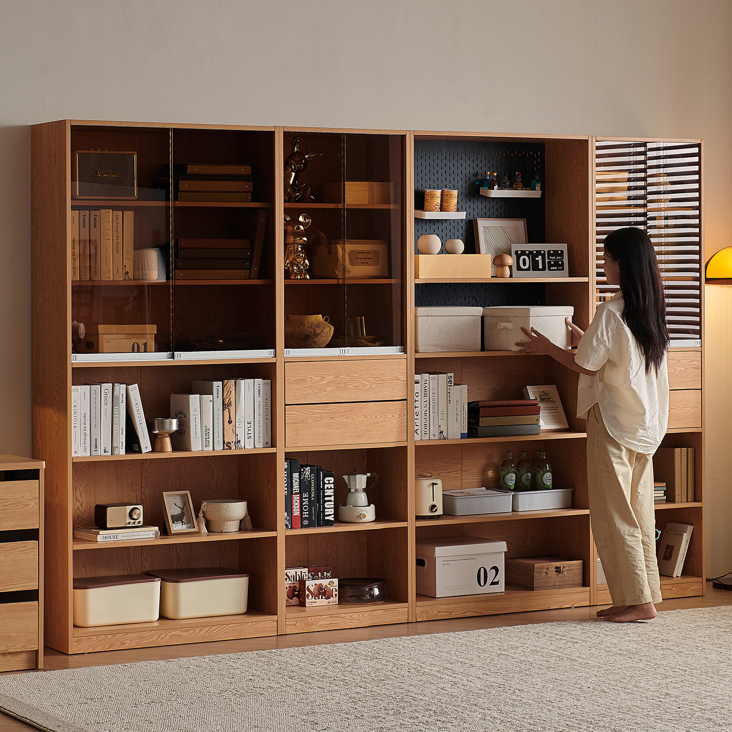 木兜家具竞藏书柜一体整墙客厅展示柜带玻璃门组合柜实木落地书柜