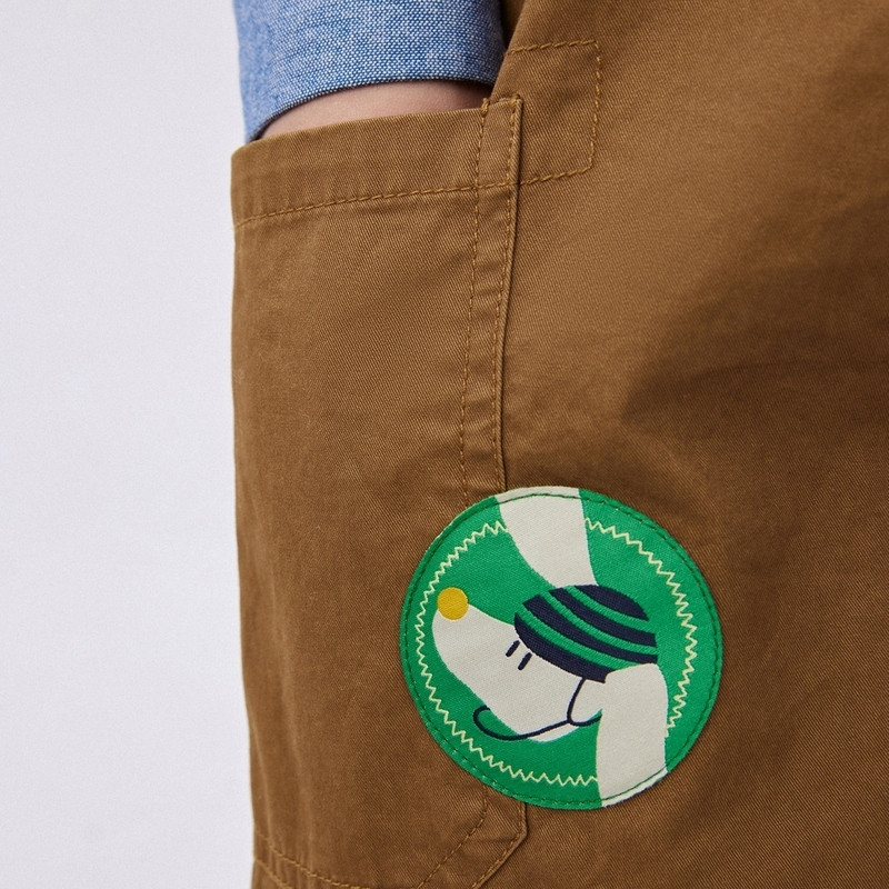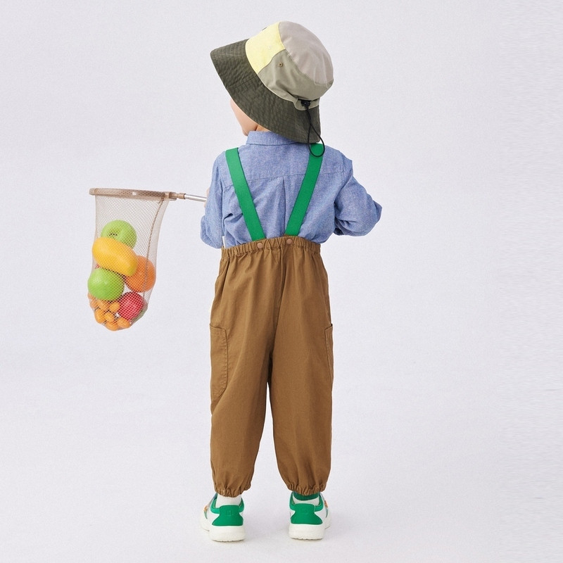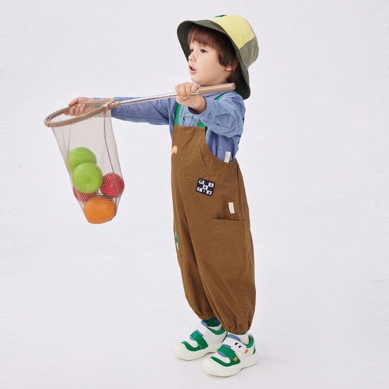 户外风背带裤,点缀彩色背带,活力织标装饰