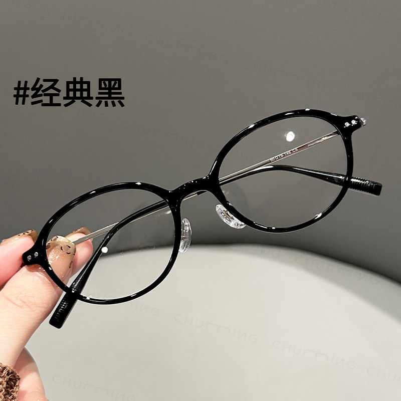纯钛圆框近视眼镜蔡司防蓝光女可配度数素颜文艺细边眼镜框镜架男