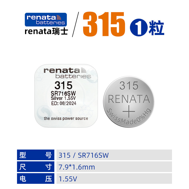 进口RENATA瑞士315氧化银手表电池SR716SW适用雷达天王表纽扣电子