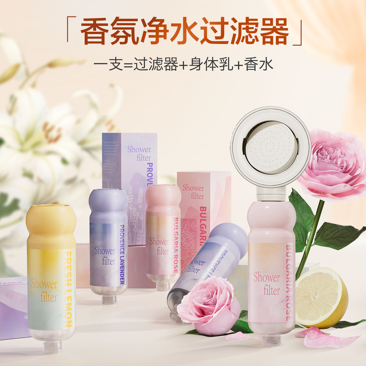 韩国香薰净水淋浴家用香氛过滤器除氯养肤花洒滤芯过滤净化2瓶装