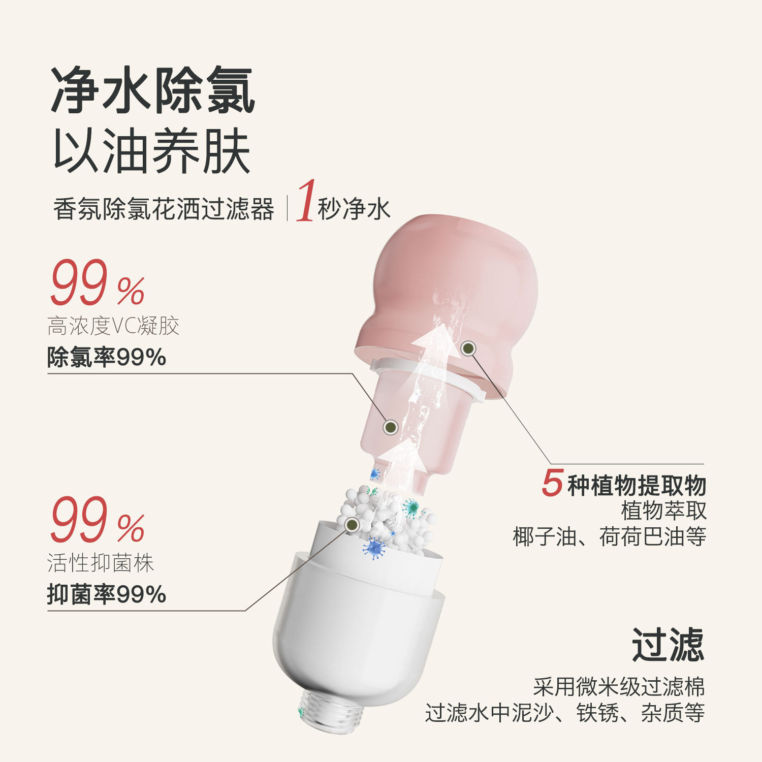 韩国香氛除氯过滤器净水淋浴家用美肤增压花洒喷头滤芯过滤净化
