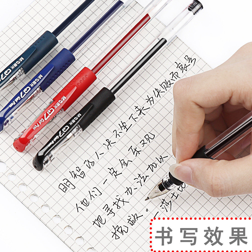 晨光官方中性笔Q7水笔子弹头学生用刷题笔签字笔水性碳素黑笔0.5mm笔芯考试专用教师红色圆珠笔办公用品文具