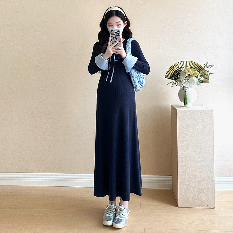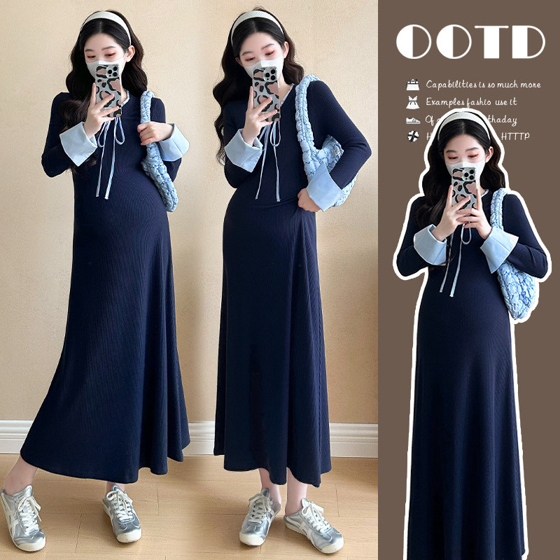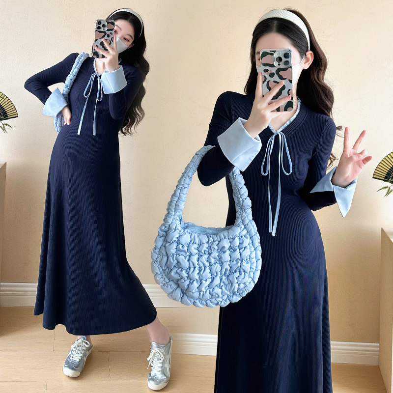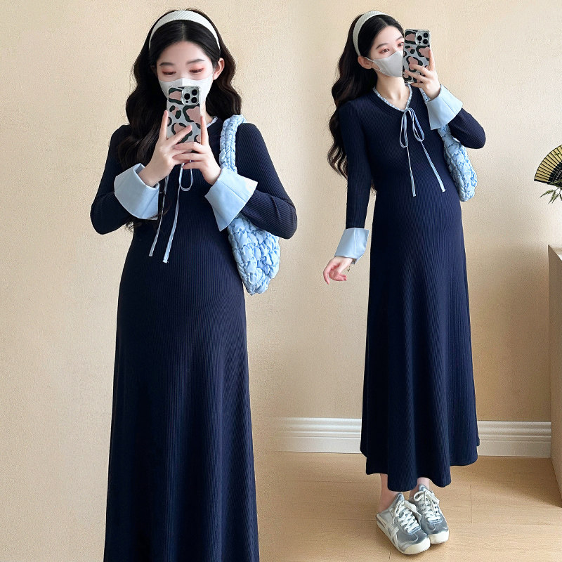 婧麒孕妇装针织连衣裙2025新款高级拼接小香风孕期洋气时尚秋冬款