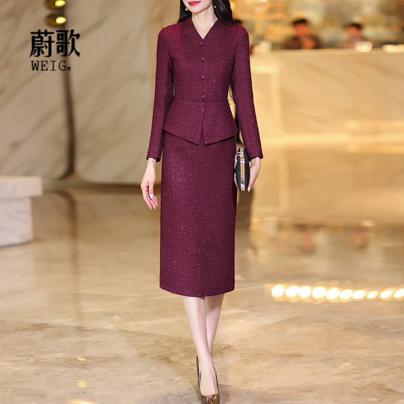 法式小香风假两件连衣裙2025秋冬新款高级感喜妈妈日常可穿包臀裙