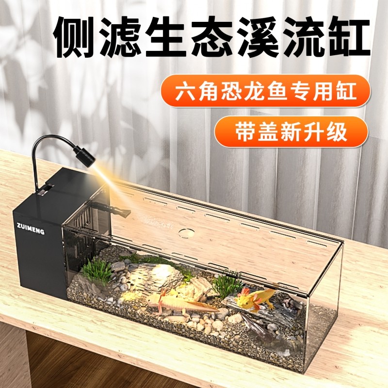 鱼缸六角恐龙鱼专用缸桌面造景蝾螈饲养缸一体成型溪流缸侧滤鱼缸