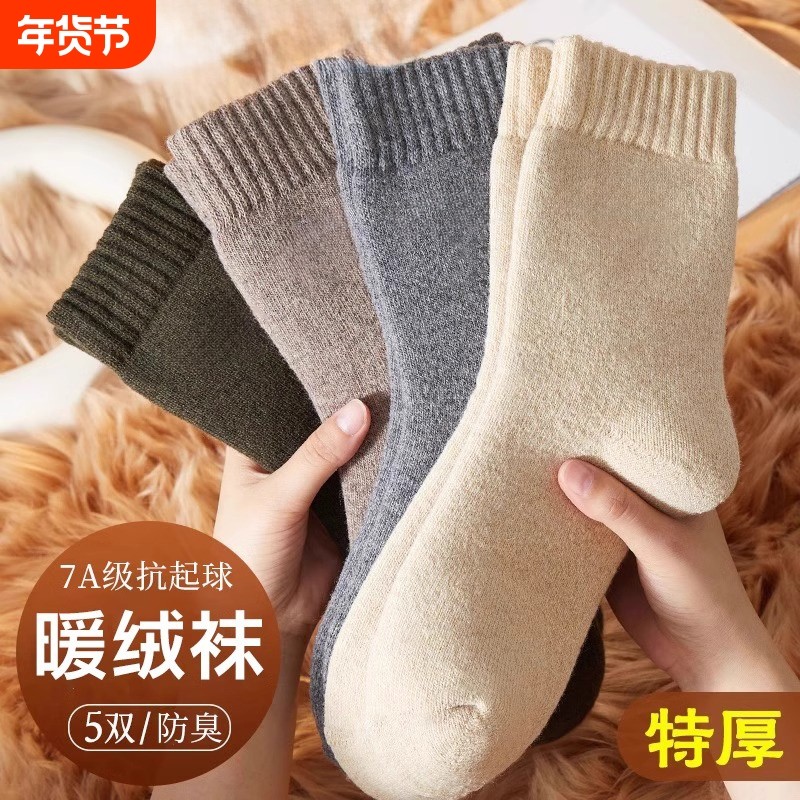 加厚袜子男秋冬中筒袜防臭加绒毛圈保暖袜冬天地板袜男士长袜特厚
