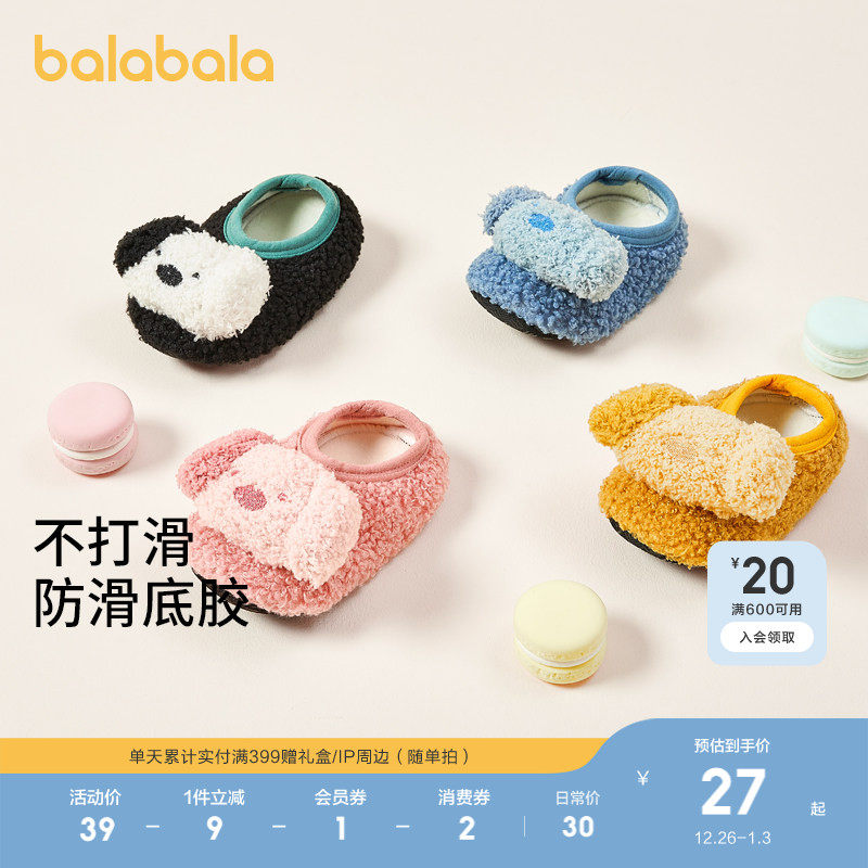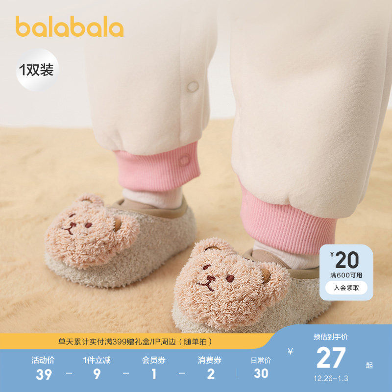 巴拉巴拉宝宝地板袜防滑点胶冬加绒2025年新款婴幼儿保暖袜学步袜