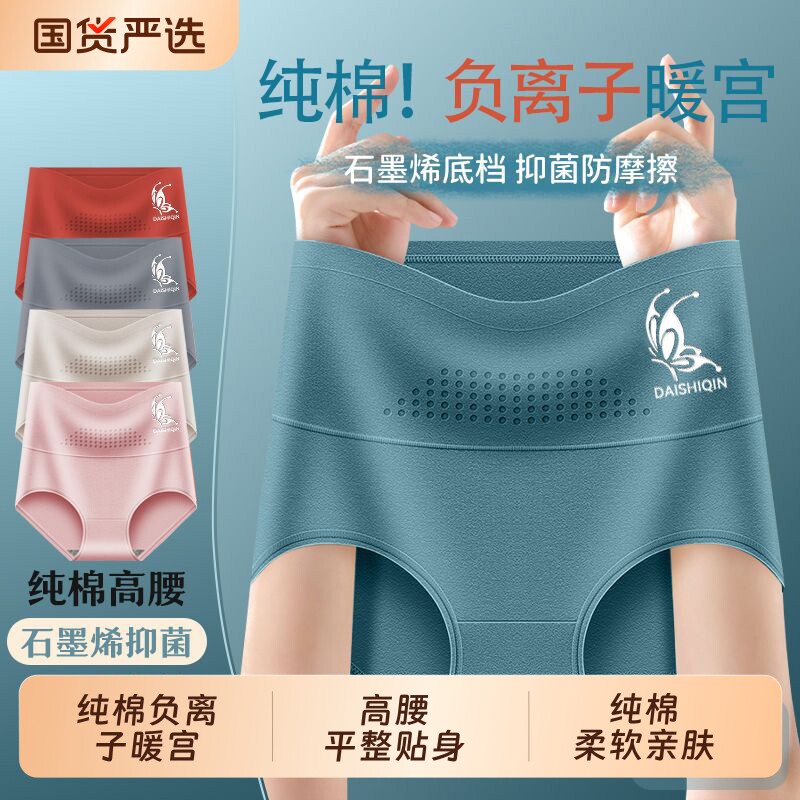 5条装纯棉高腰内裤女抗菌收腹提臀暖宫大码胖mm三角短内裤新款