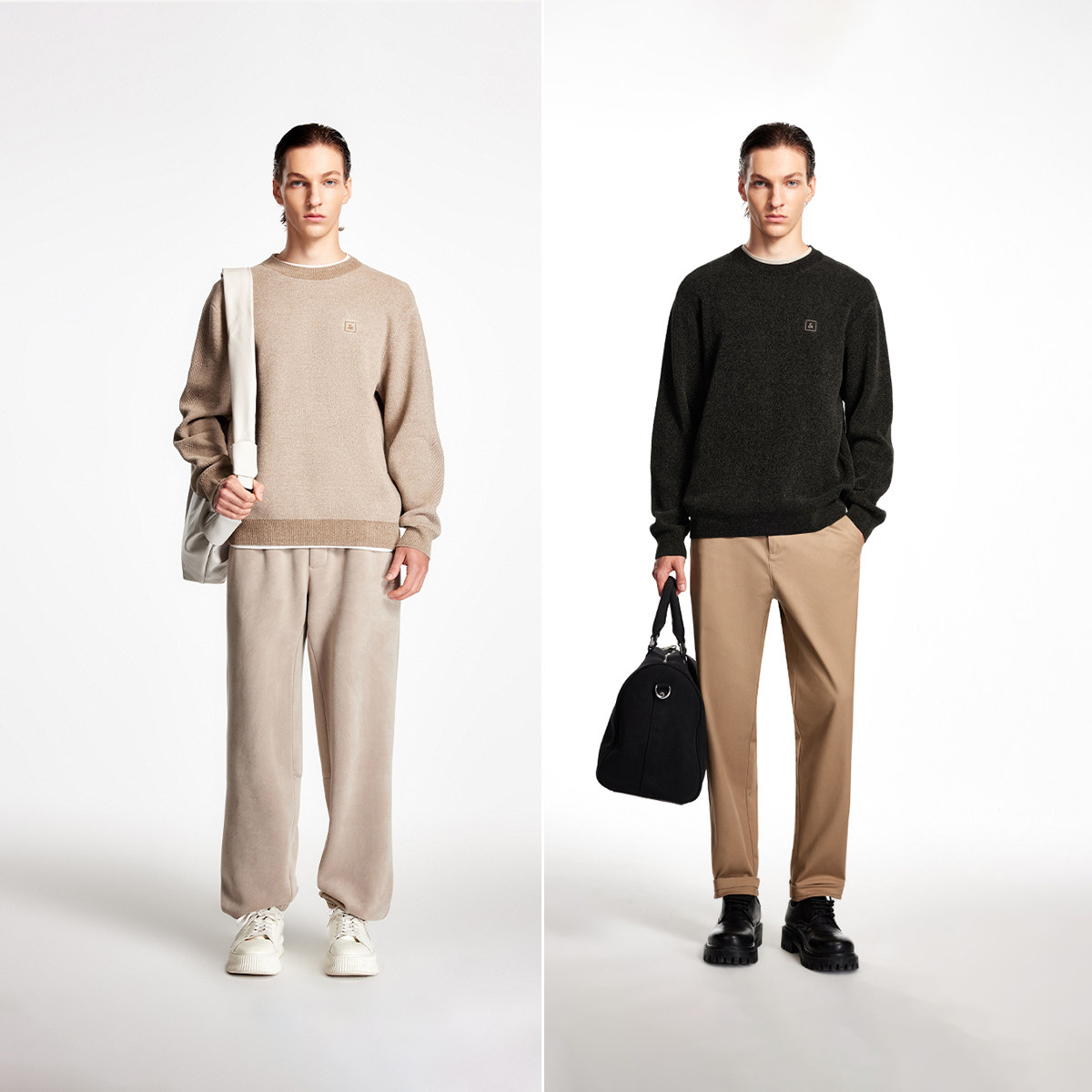略宽松版型,舒适针织面料,罗纹圆领袖口