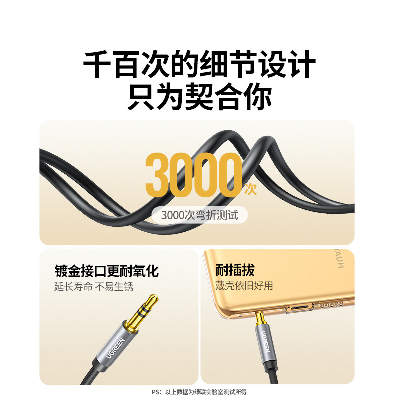 绿联aux音频连接线3.5mm音响音箱台式电脑电视手机数据输出转接换器汽车载专用35毫米公对公头戴式耳机双头插