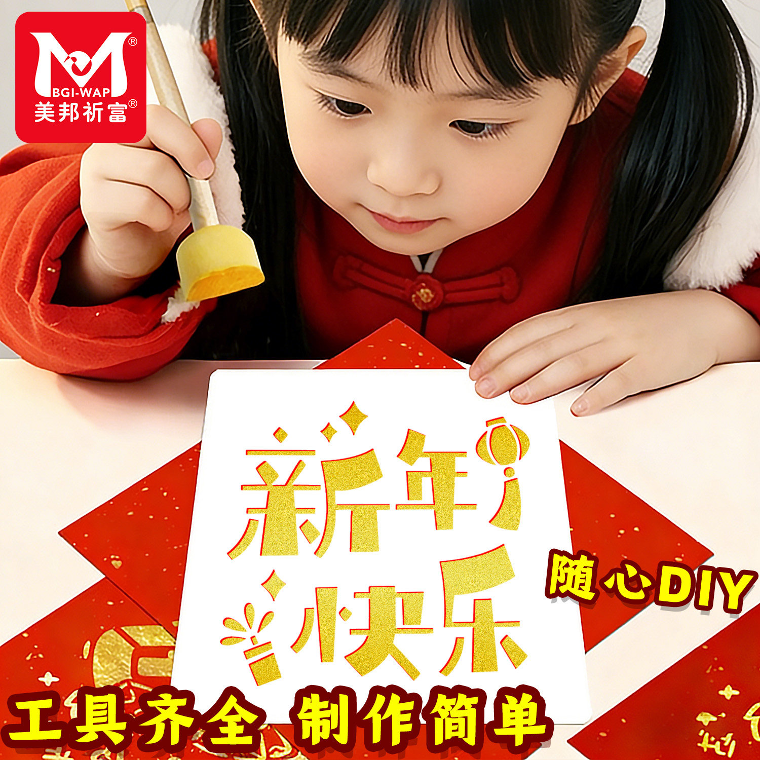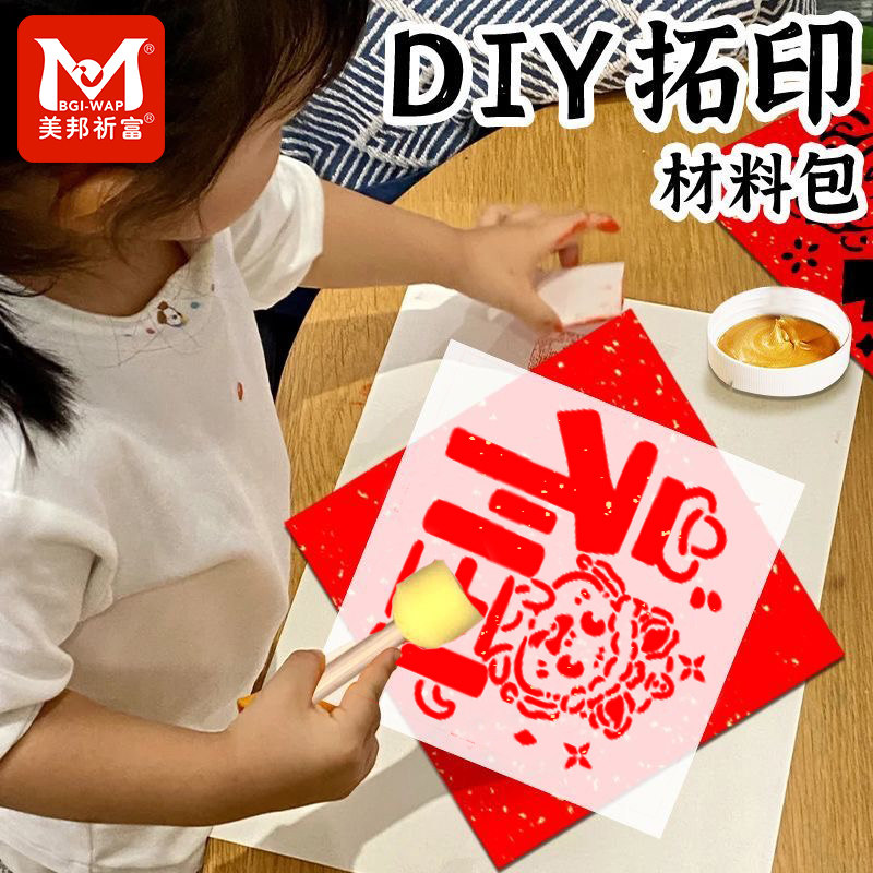 美邦祈富2026新年拓印画工具套装材料包幼儿园diy元旦节手工制作福字模板马年福字拓印模板春节门贴自制年画