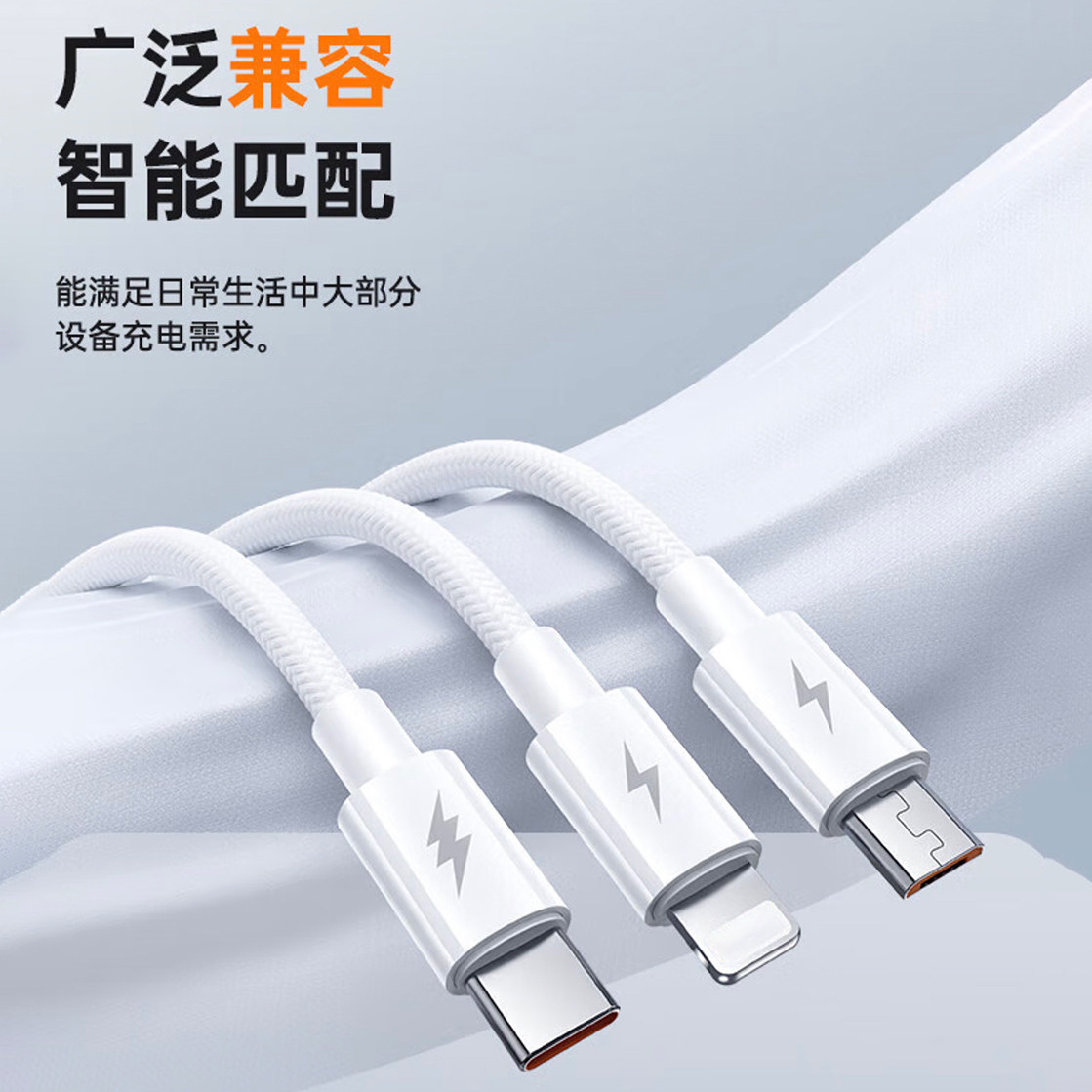 超级快充三合一数据线通用充电线适用苹果荣耀华为OPPO小米VIVO手机通用车载一拖三数据线透明芯片type-c带灯
