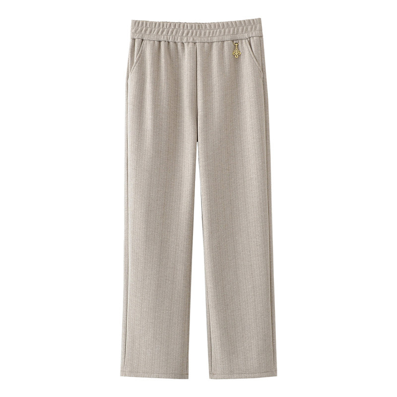 妈妈裤子春秋款松紧高腰弹力中老年女裤宽松大码直筒奶奶加绒长裤