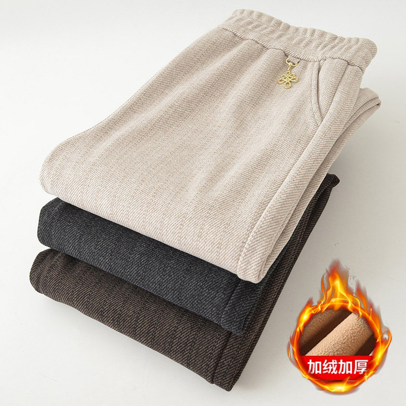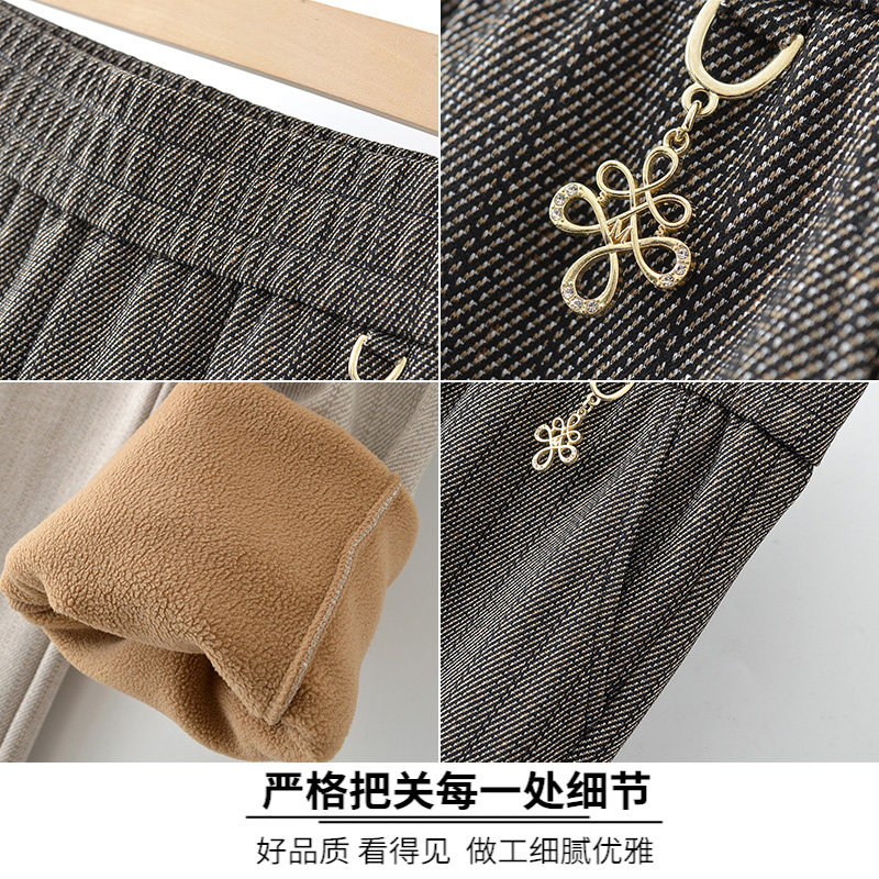 妈妈秋冬款加绒裤子女士直筒裤洋气奶奶高腰加厚休闲裤黑色咖色