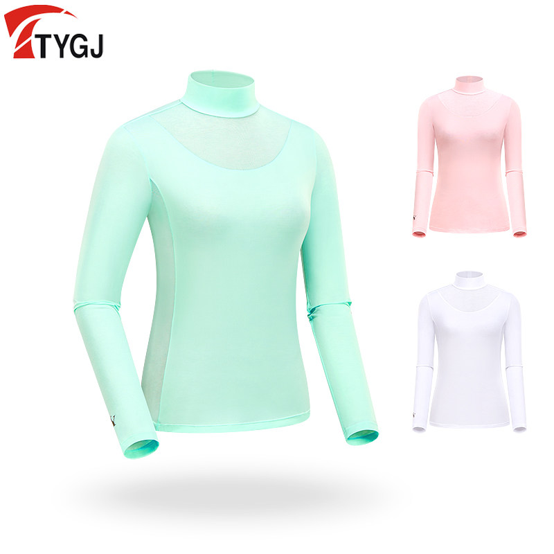 高尔夫球女士冰丝防晒衣长袖速干网纱高立领户外运动打底上衣服装