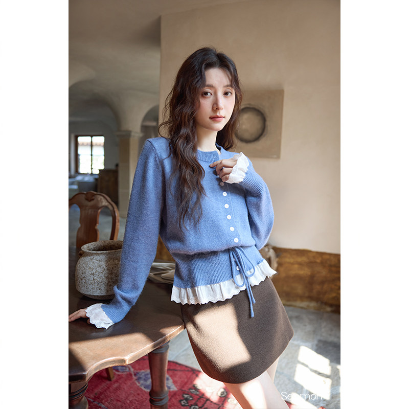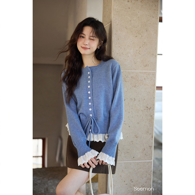 夕蒙2025新款秋冬韩系气质设计感上衣宽松蕾丝拼接慵懒高级感毛衣