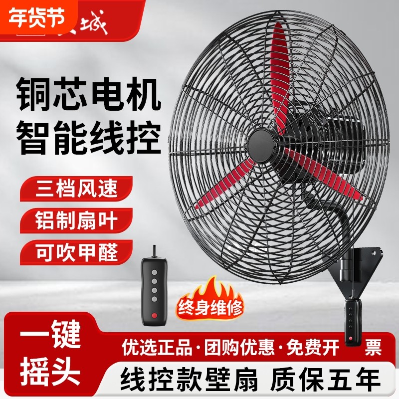 长城工业壁扇挂墙式电风扇大风力挂壁式牛角扇壁挂强力大功率落地