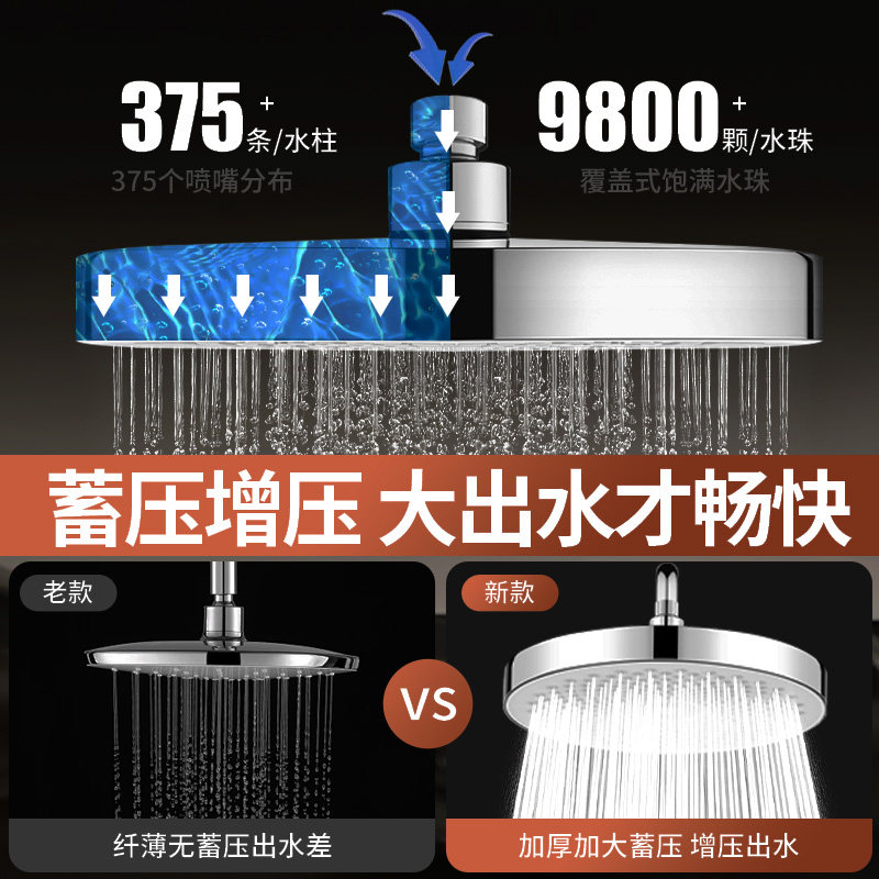 增压淋浴莲蓬头顶喷花洒大喷头通用加压单头淋雨家用沐浴洗澡套装