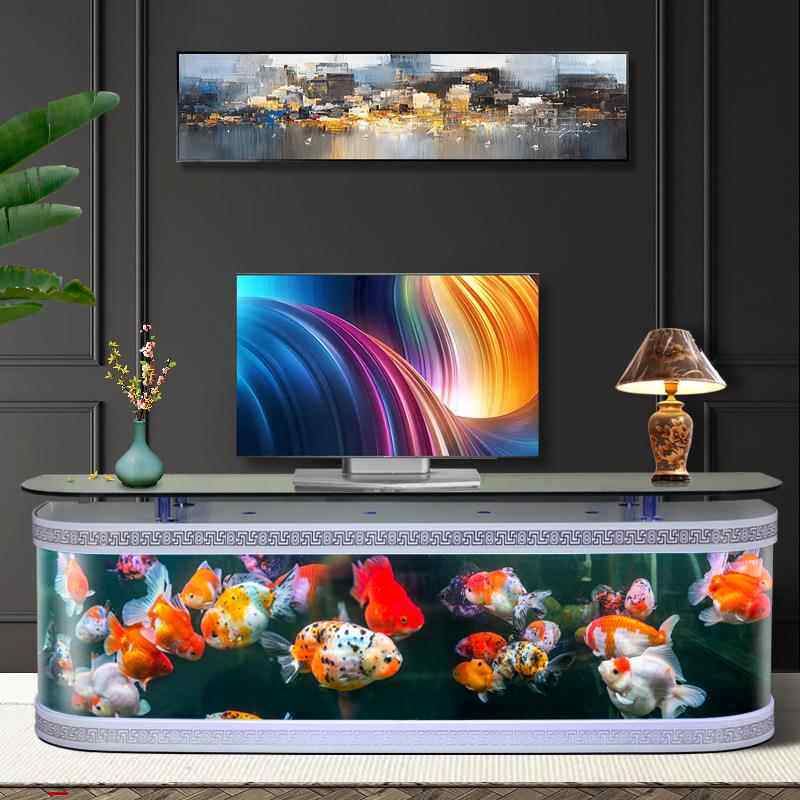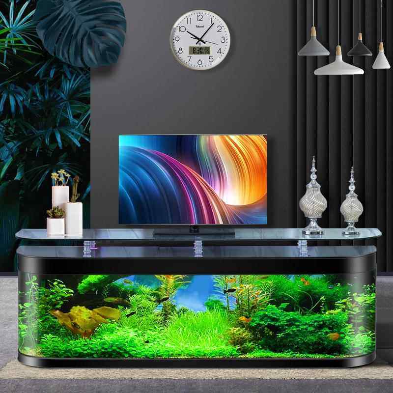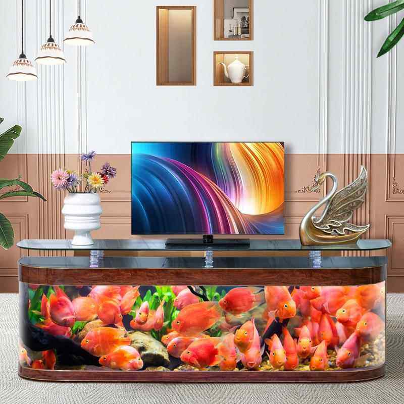 电视柜鱼缸客厅家用小中大型懒人免换水轻奢背滤金鱼缸观赏水族箱