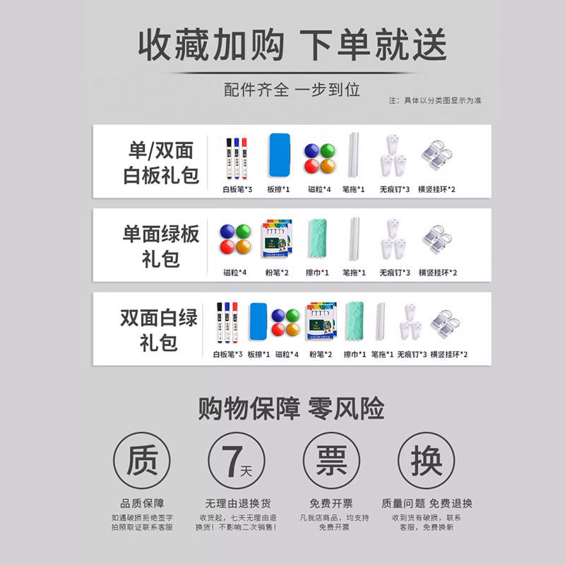 黑板挂墙式双面白板写字板儿童家用教学墙贴可擦磁吸无尘大小看板展示板磁性书写板墙面画板留言板记事板定制