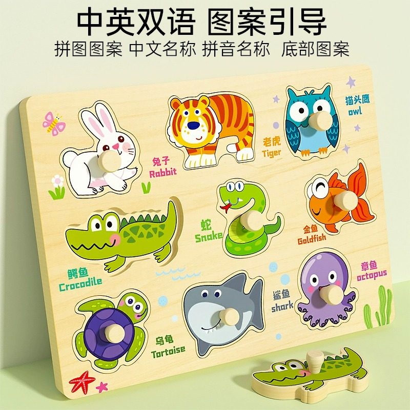手抓板拼图蒙氏早教益智玩具嵌板儿童认知配对一岁半宝宝婴儿积木