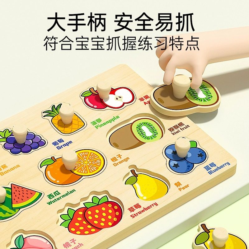 手抓板拼图蒙氏早教益智玩具嵌板儿童配对宝宝婴儿积木形状水果